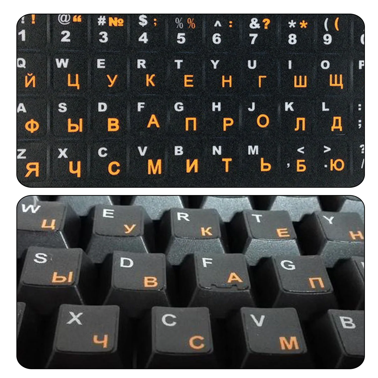 Наклейки на русскую клавиатуру, напечатанные на непрозрачных черных фоновых этикетках, и переносные буквы на английском и русском языках для раскладки клавиатуры