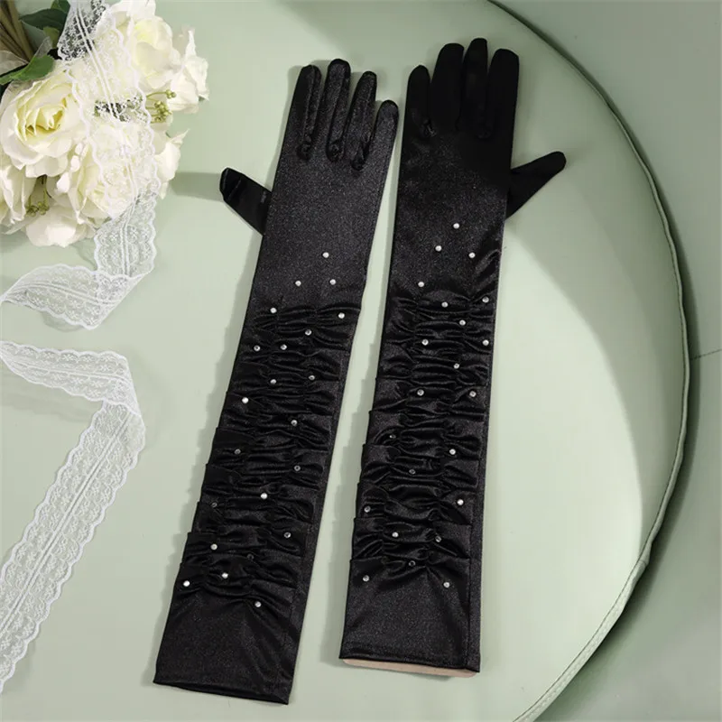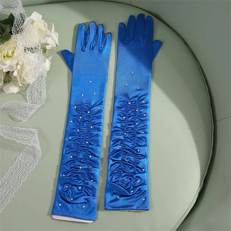 50 см стрейч на локтях сексуальные Стразы атласные перчатки на палец женские ранние Свадебные драмы товары для вечерние Косплей Костюм