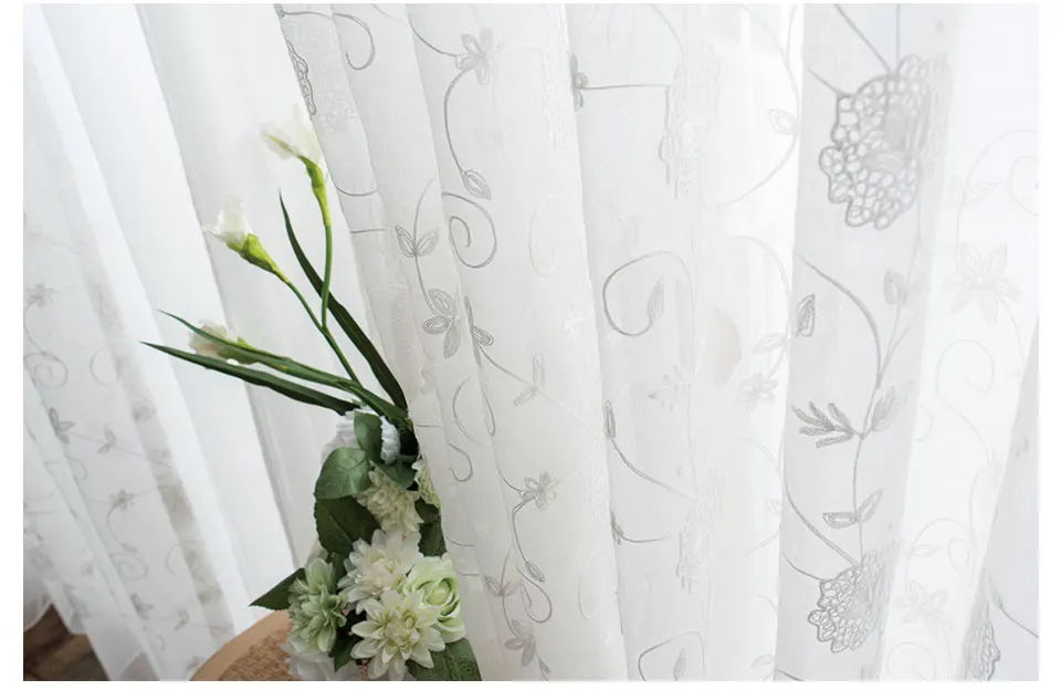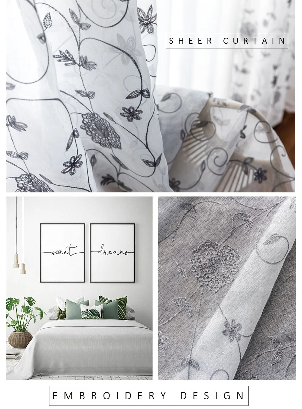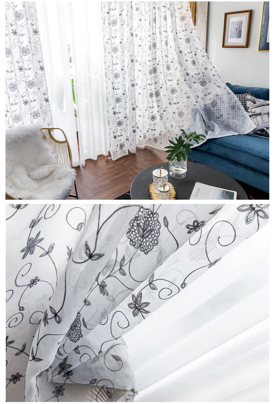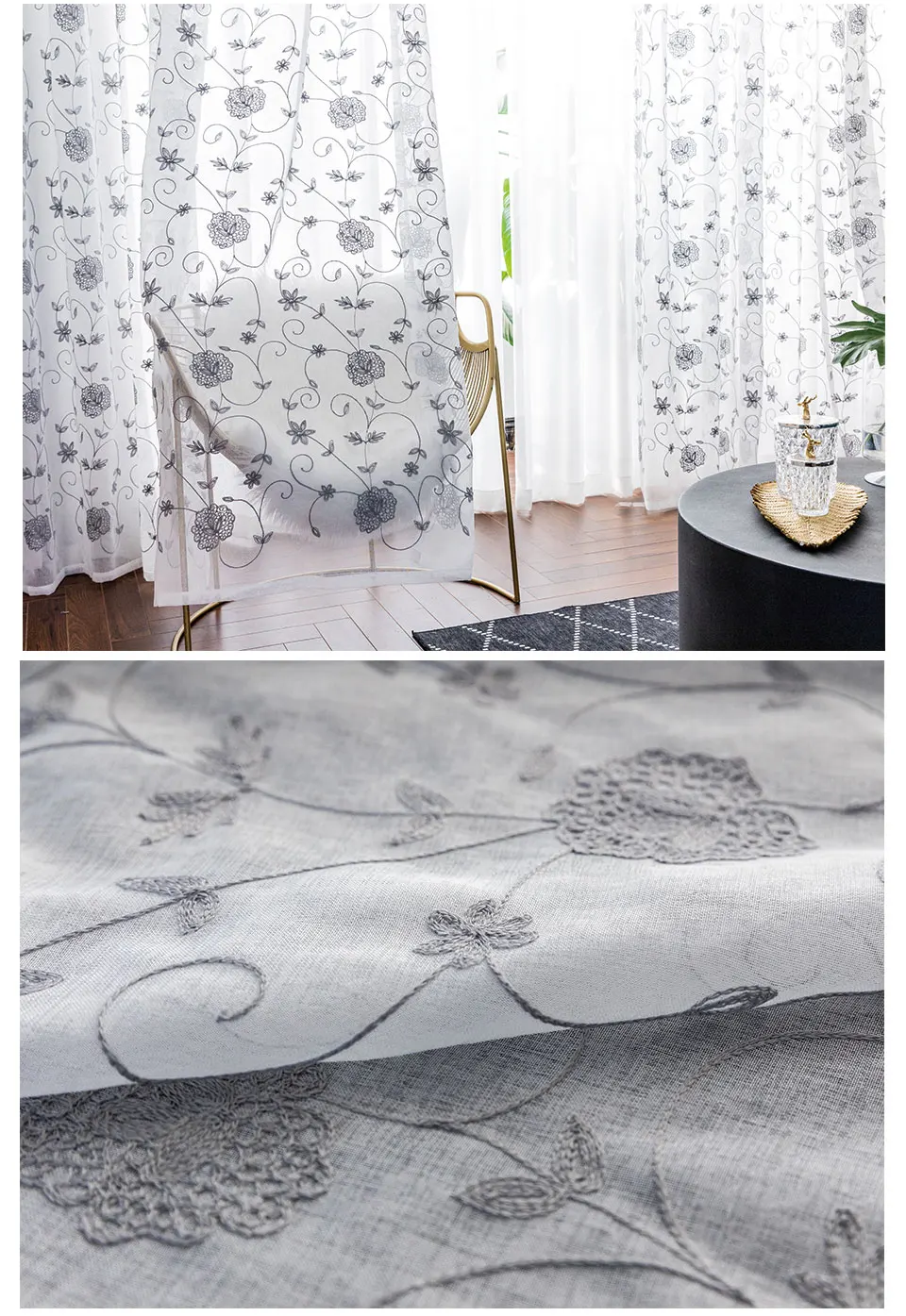 LISM Цветочная вышивка вуаль занавески для гостиной окно отвесные занавески для спальни вышивка тюль кухня украшение дома