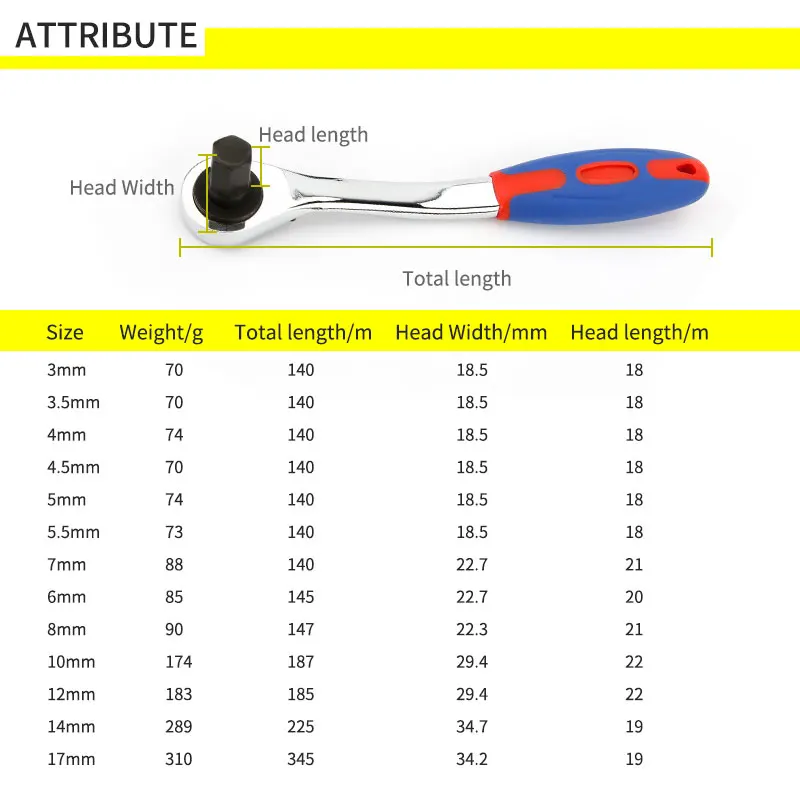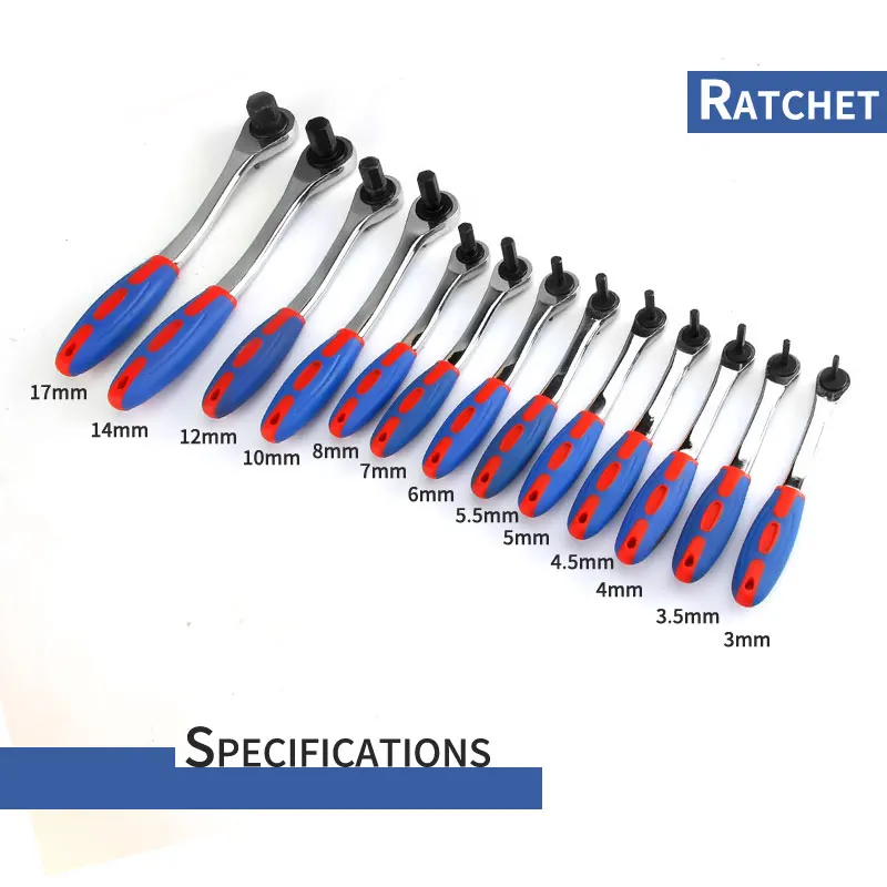 Двусторонний шестигранный ключ с храповым механизмом, с шестигранной головкой и мягкой резиновой рукояткой, 4 мм, 5 мм, 6 мм, 8 мм, 10 мм, 12 мм, 14 мм, 17 мм