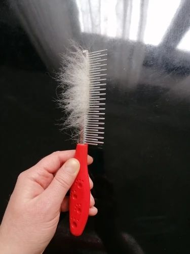 Очень удачная расческа. Шерсть не дерёт, очень удобно для снятия репейника. У меня пудели и проблема с репейниками налипающими и путающими шерсть стоит каждый год. Расчёску сначала попробовала у подруги, потом решила купить и себе. Доставка быстрая. Все прекрасно. спасибо продавцу!