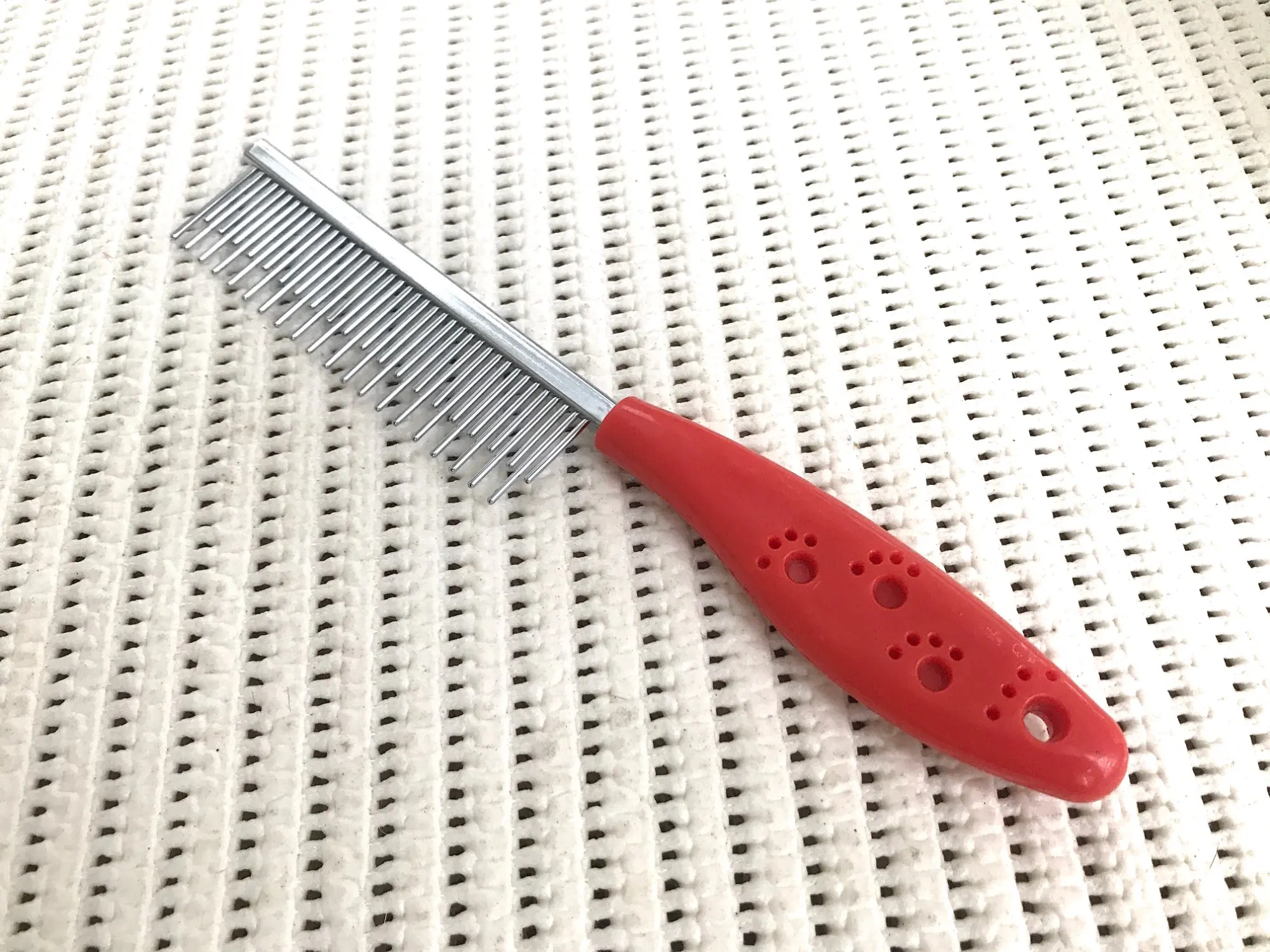 Пришла расческа с красной ручкой! В руке сидит хорошо , чешет мягко, шпиц оценил. Объеденили с другими посылками. Доставка две недели, весь путь отслеживался. Спасибо продавцу!
