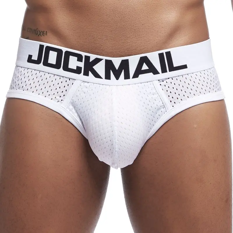 JOCKMAIL, Сетчатое мужское бикини, гей нижнее белье, сексуальные мужские трусы-бикини, cuecas calzoncillos hombre, одноцветные мужские трусики