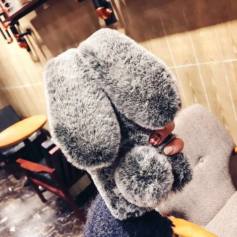 Для iPhone 11 12 Pro X XR Xs Max 6s 7 8 Plus чехол для телефона 3D милый кролик пушистый теплый для Samsung S 10 Note 8 9 20 Ультра чехол