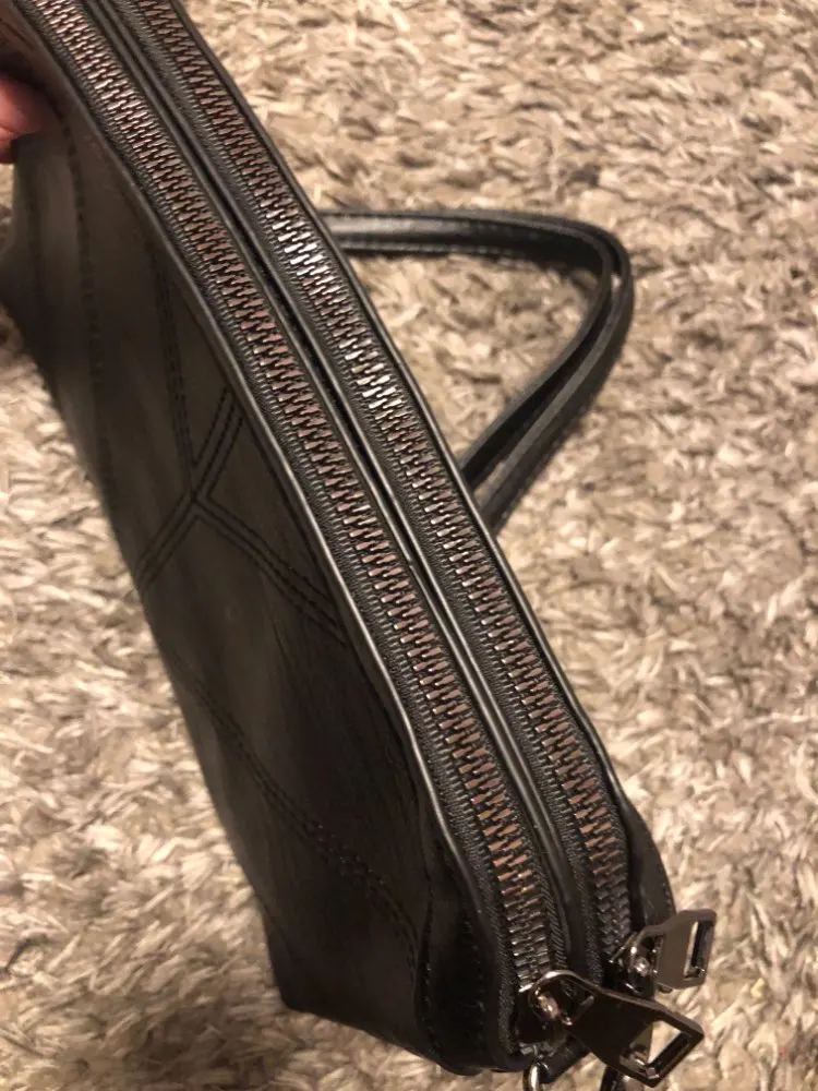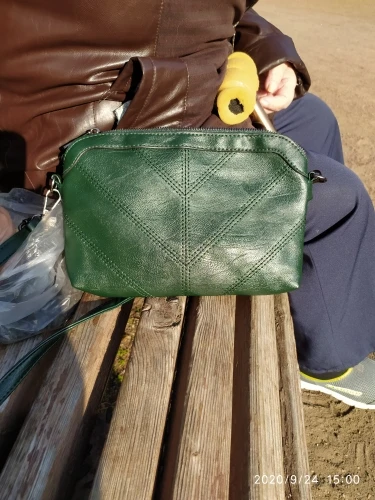 сумка за свою цену норм , лёгкая, вместительная/телефон, кошелёк, пакеты доя продуктов, салфетки и всё что вам нужно поместится, молнии красивые , блестящие, единственный минус -застёгивать надо аккуратно, а не рывком, как привыкла, т.к.сумка мягкая, но молнии работают отлично, цвет совпадает с фото продавца, продавец положил приятный бонус-резиночку, ремешок у сумки не короткий, как пишут в некоторых отзывах, а норм, в Пензу посылка 20 дней, ставлю "5", всё О"К!!!