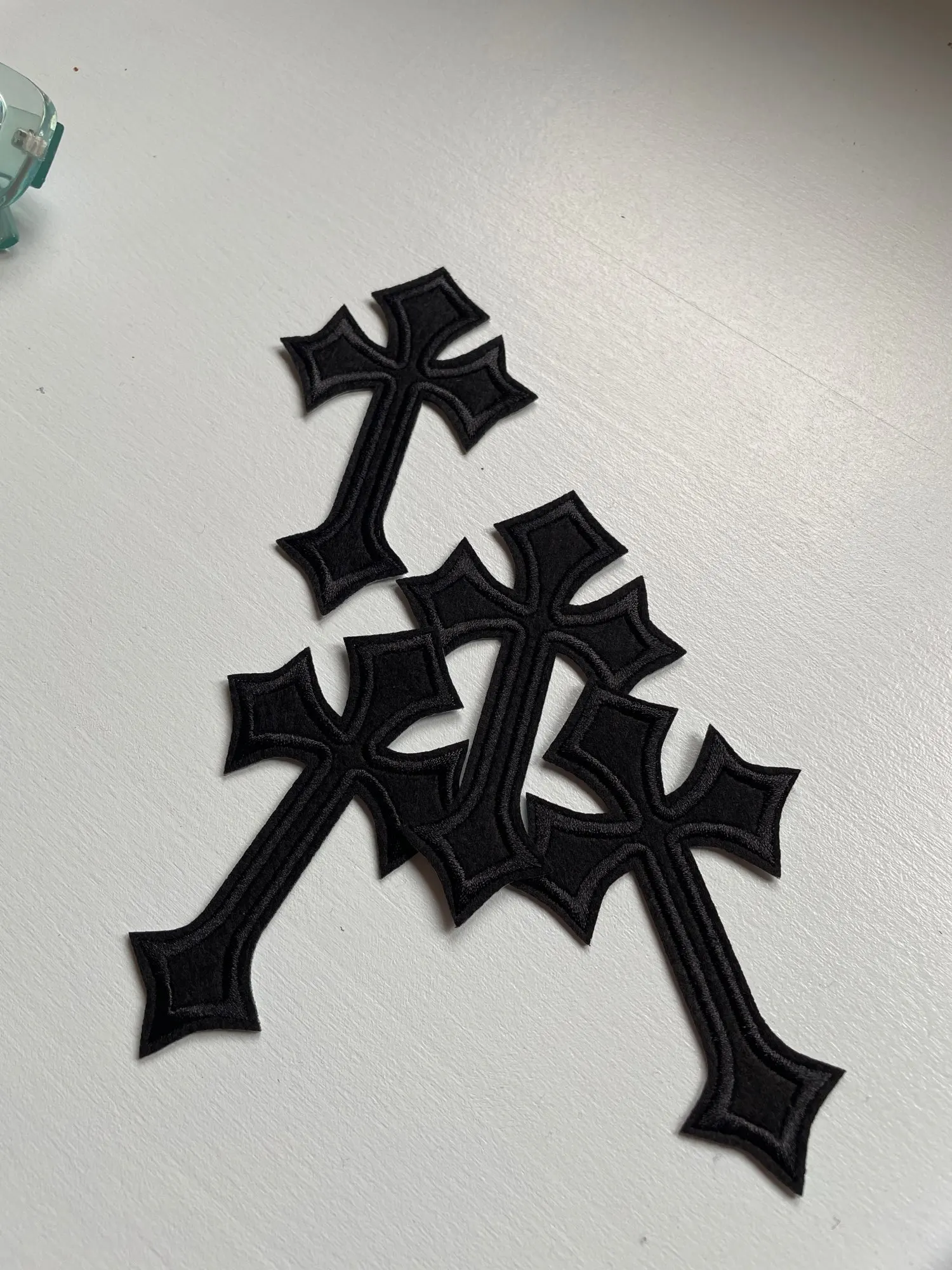 Черные вышитые нашивки с Иисусом крестом, приклеенные утюгом вышитые готические Значки для сумок, джинсов, шляп, футболок, аппликации для рукоделия, Декор