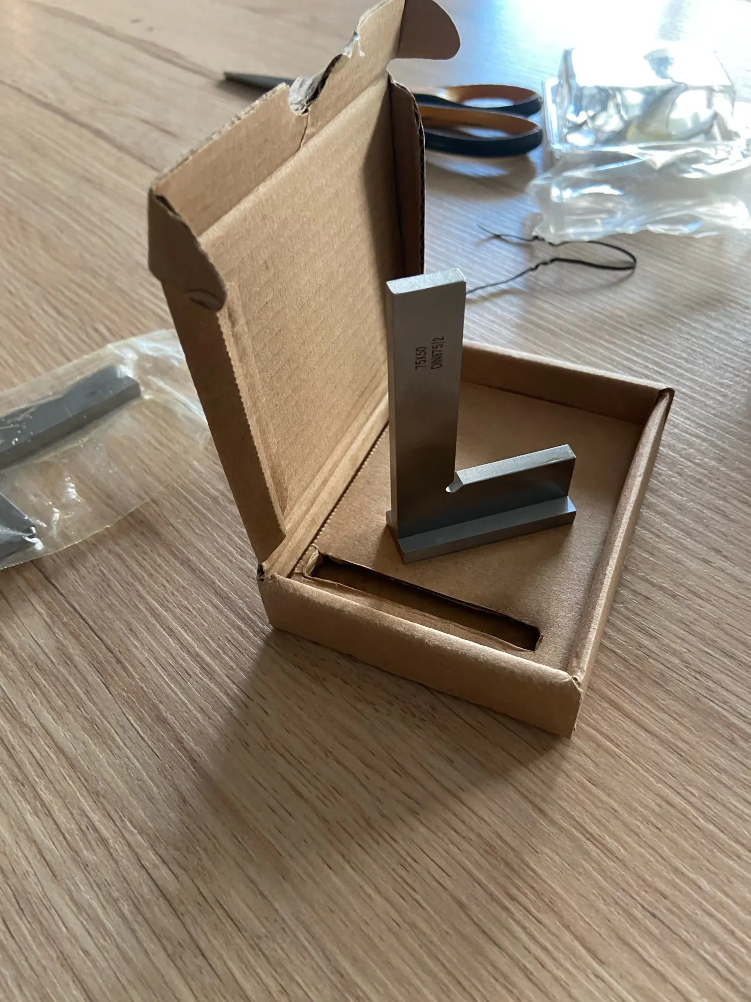 товар получил. упаковка без пупырки, но коробка из толстого гофрокартона, сама хоть изрядно помята - однако угольник целый и коробку не пробил (углы у него острые довольно). сам угольник вроде ровный. обработан хорошо и угол (проверял дешёвенькими угольниками уже зная их косяки и примерный размер привирания) как будто верный, до минуты проверить нечем. товаром доволен, продавцу спасибо - в том числе и за довольно таки быструю доставку.