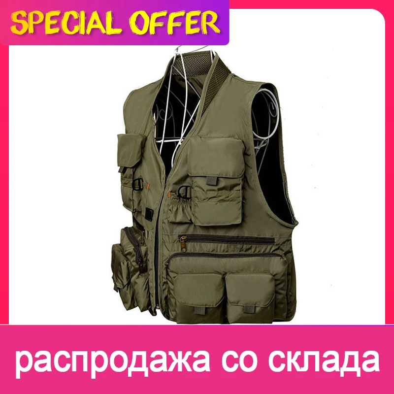 Жилет рыболовный из полиэстера, быстросохнущий, с несколькими карманами, туристический жилет