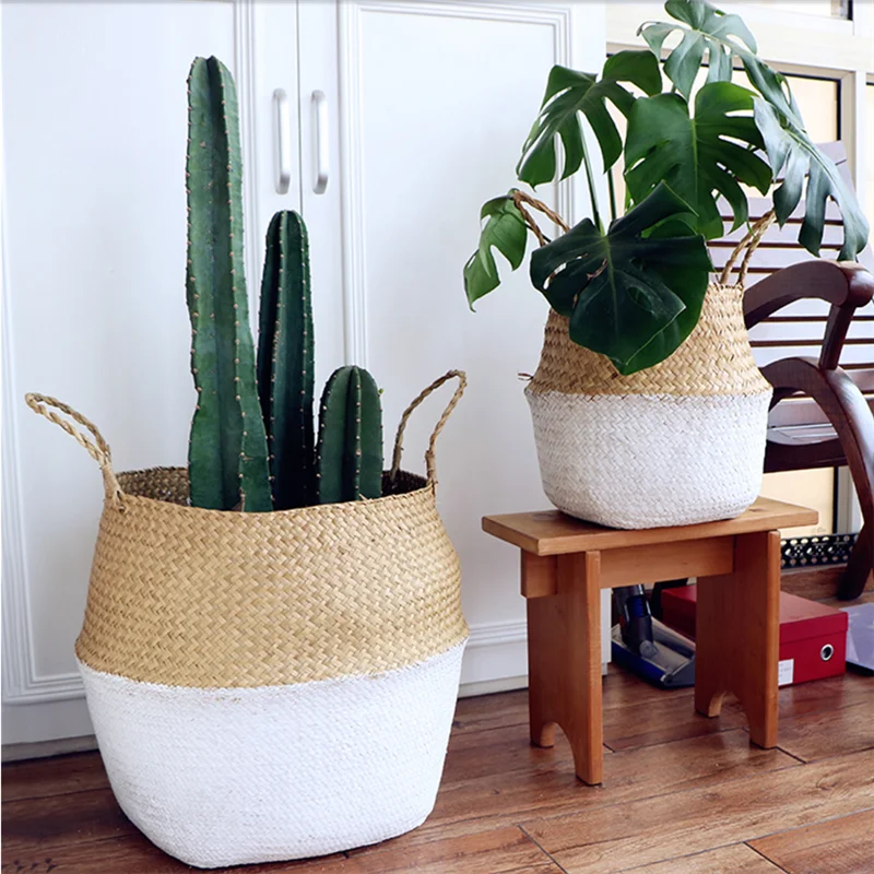 Бамбуковые корзины для хранения ручной работы, складные соломенные Лоскутные плетеные Ротанговые водоросли, живот, садовый цветочный горшок, корзина для цветов