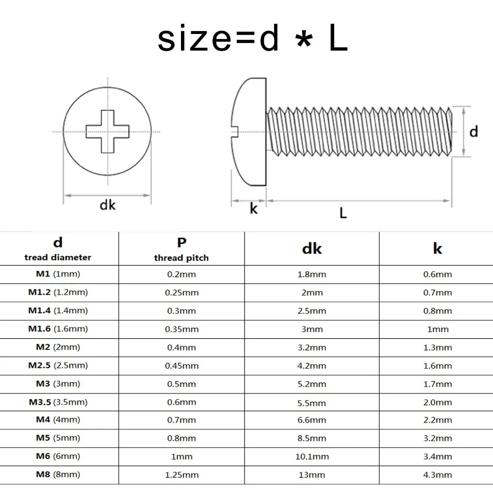 51050 шт. M1 M1, 2 M1.4, M1.6, M2, M2.5, M3, M3.5, M4, M5, M6, M8, GB818, 304, нержавеющая сталь, крест, круглая сковорода Phillips