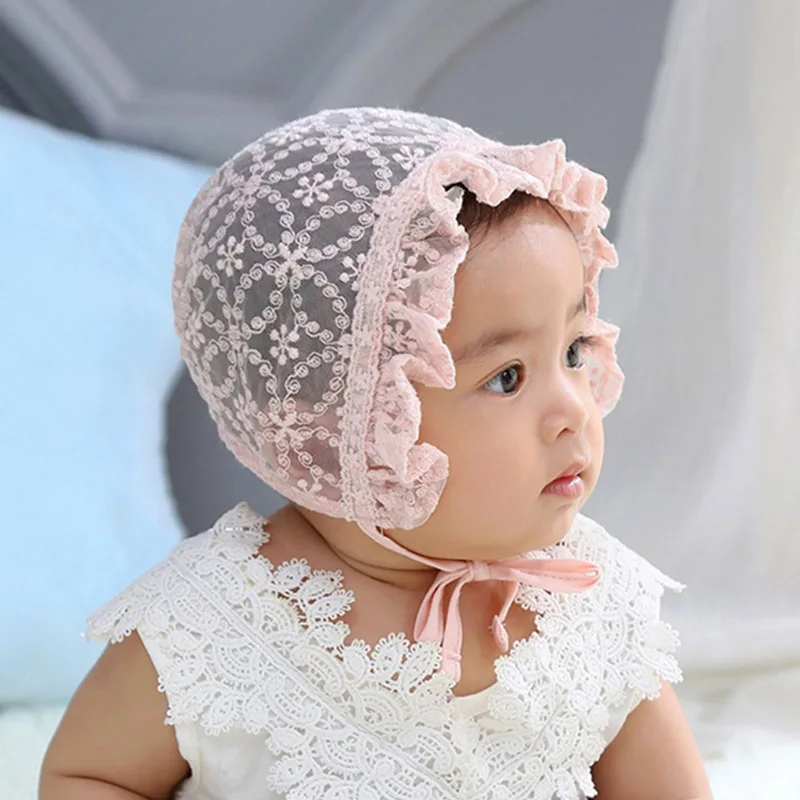 Шапочка для новорожденных девочек, хлопковая, с кружевом, летняя