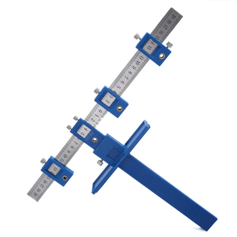 Быстрая, простая регулировка-многоцелевой шаблон для точной установки вытягиваний/ручек на ящиках и дверях, l-образный кронштейн и верхние винты удерживают его горизонтально, а два больших передних винта блокируются в вертикальном положении.