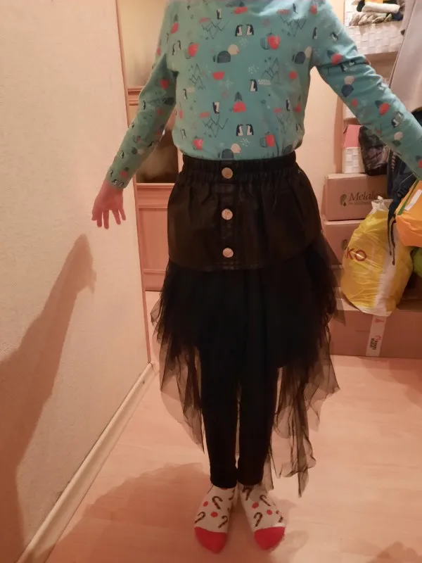 Юбка подошла на девочку 6 лет, рост 126 см. Резинка довольно плотная. Дочь худенькая и сидит плотно. На более полную девочку думаю будет жать. На упаковке указан размер 140. Но на рост 140 точно не подойдет. Шло долго. С продавцом не общалась.