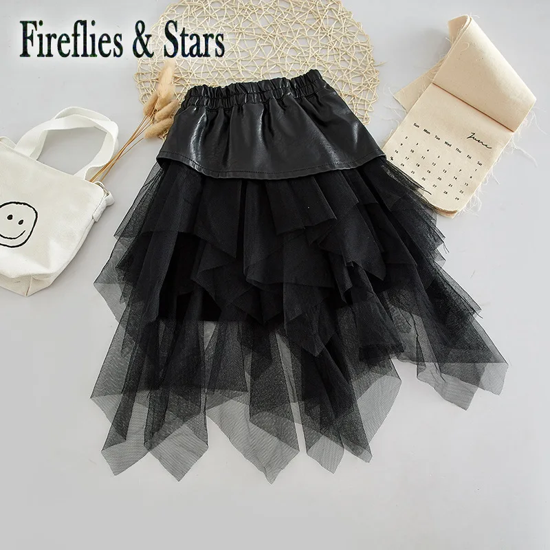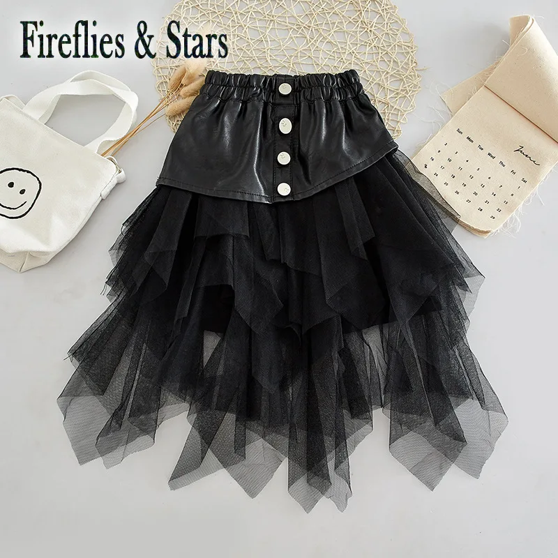 Демисезонная юбка-пачка для девочек, детская юбка из искусственной кожи, детская юбка, уличная одежда, низ, асимметричная многослойная сетчатая юбка на осень-весну для детей от 2 до 14 лет