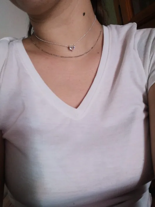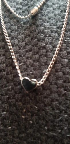 Сердце действительно красивое и блестящее, хотя и действительно маленькое, что на самом деле довольно мило. Сама цепочка также довольно короткая, что делает сердце висящим действительно близко к вашей шее, но это не проблема для меня, лично. В целом, идеально по цене. Я надеюсь, что он не станет зеленым или черным.