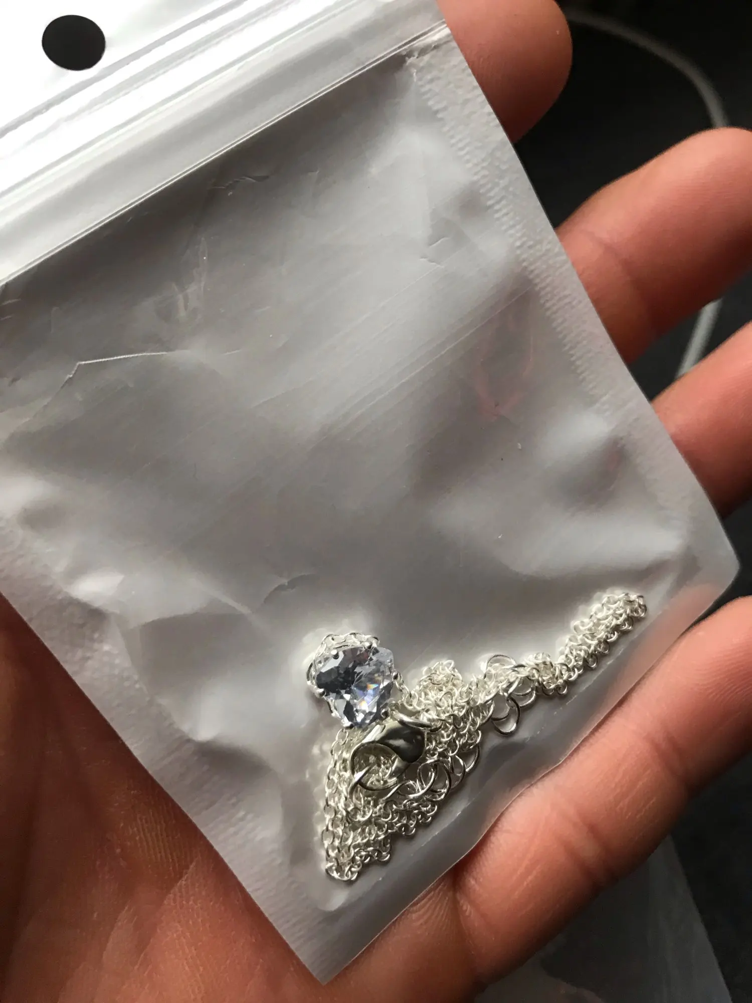 The necklace is really cute! I thought it was going to be much longer, but it’s really small - thankfully, it’s also adjustable :) The only downside is that sometimes the crystal flips over while wearing it, but that’s not really an issue I guess :-)