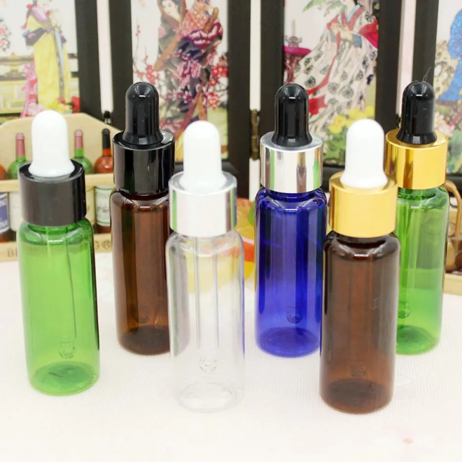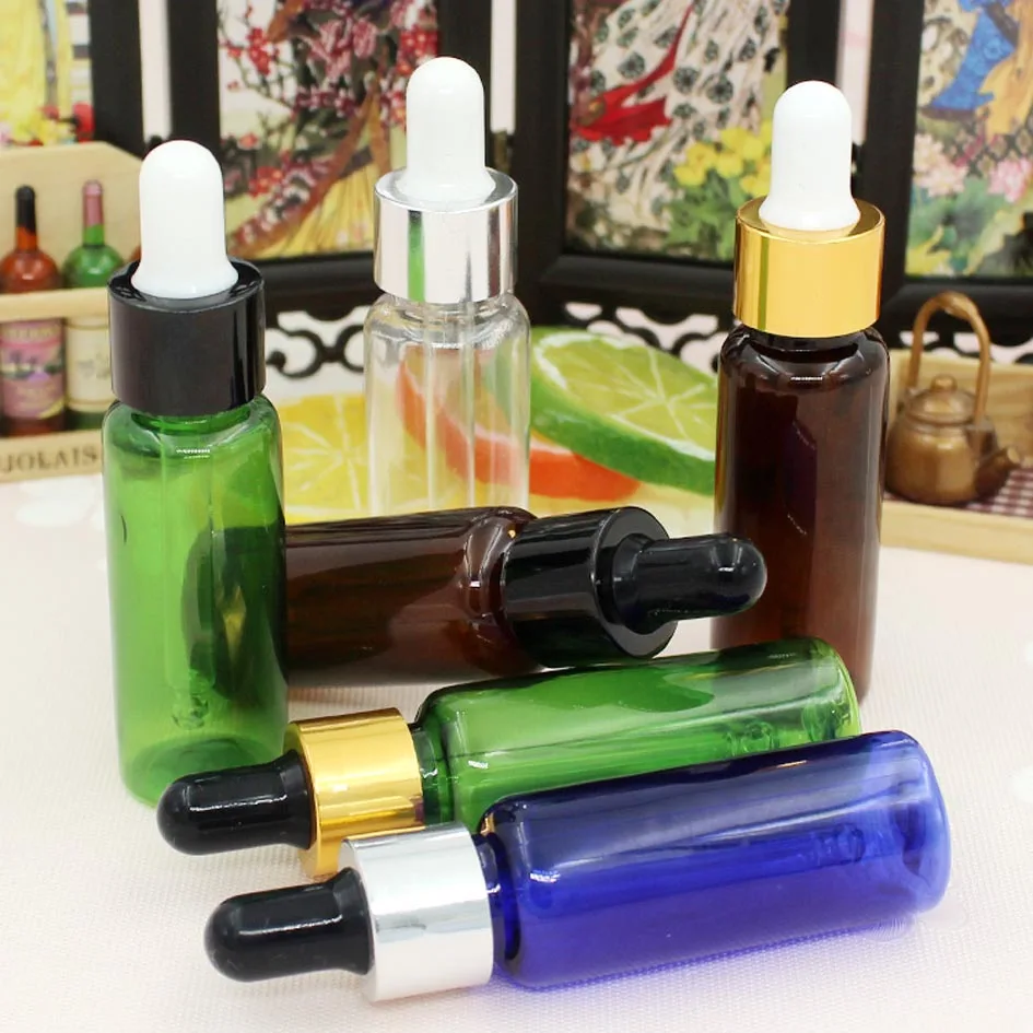 Емкость 10 мл/15 мл/20 мл 50 шт./лот PET эфирное масло капельница бутылка пластиковая капельница s с серебряной золотой и черной крышкой