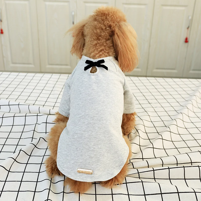 Одежда для собак Тедди, весенне-осенний костюм из двух ножек, Бишон, померанский маленький щенок, золотистая Стандартная рубашка с круглым вырезом
