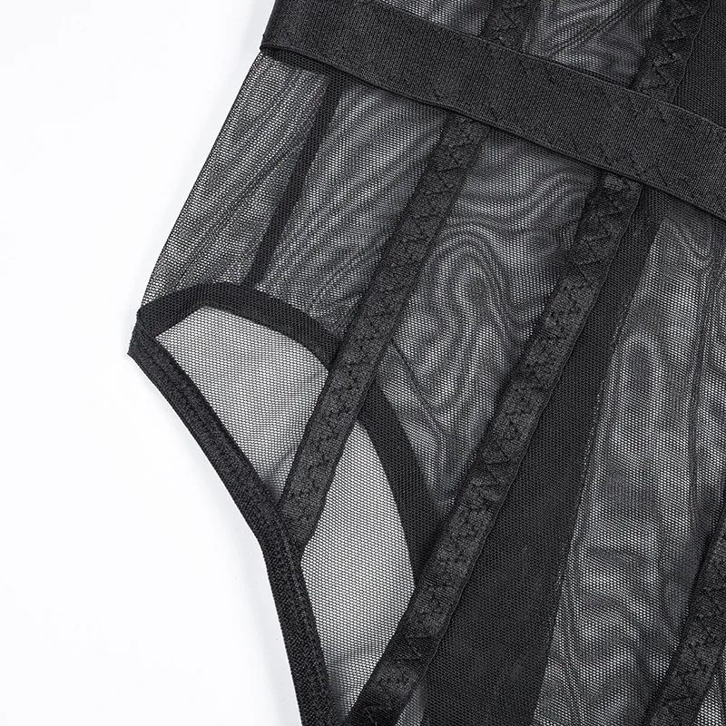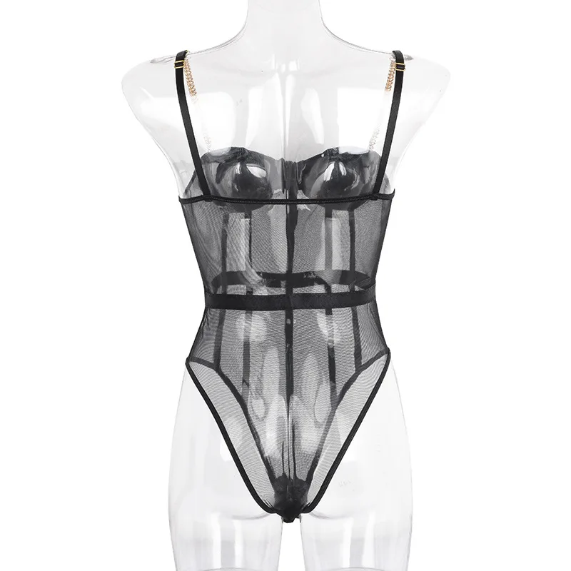 Женский сетчатый комбидресс Cryptographic, черный прозрачный комбидресс с металлическими цепочками, на бретелях, с открытой спиной, для клувечерние