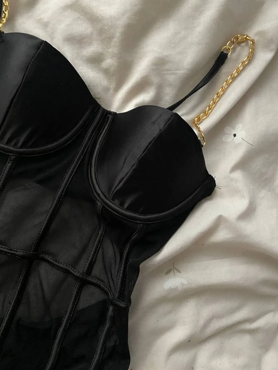 выглядит супер!НО чашечки под грудь маловаты(((И надо бы делать застёжку в интимной зоне, а то в туалет ходить проблематично)