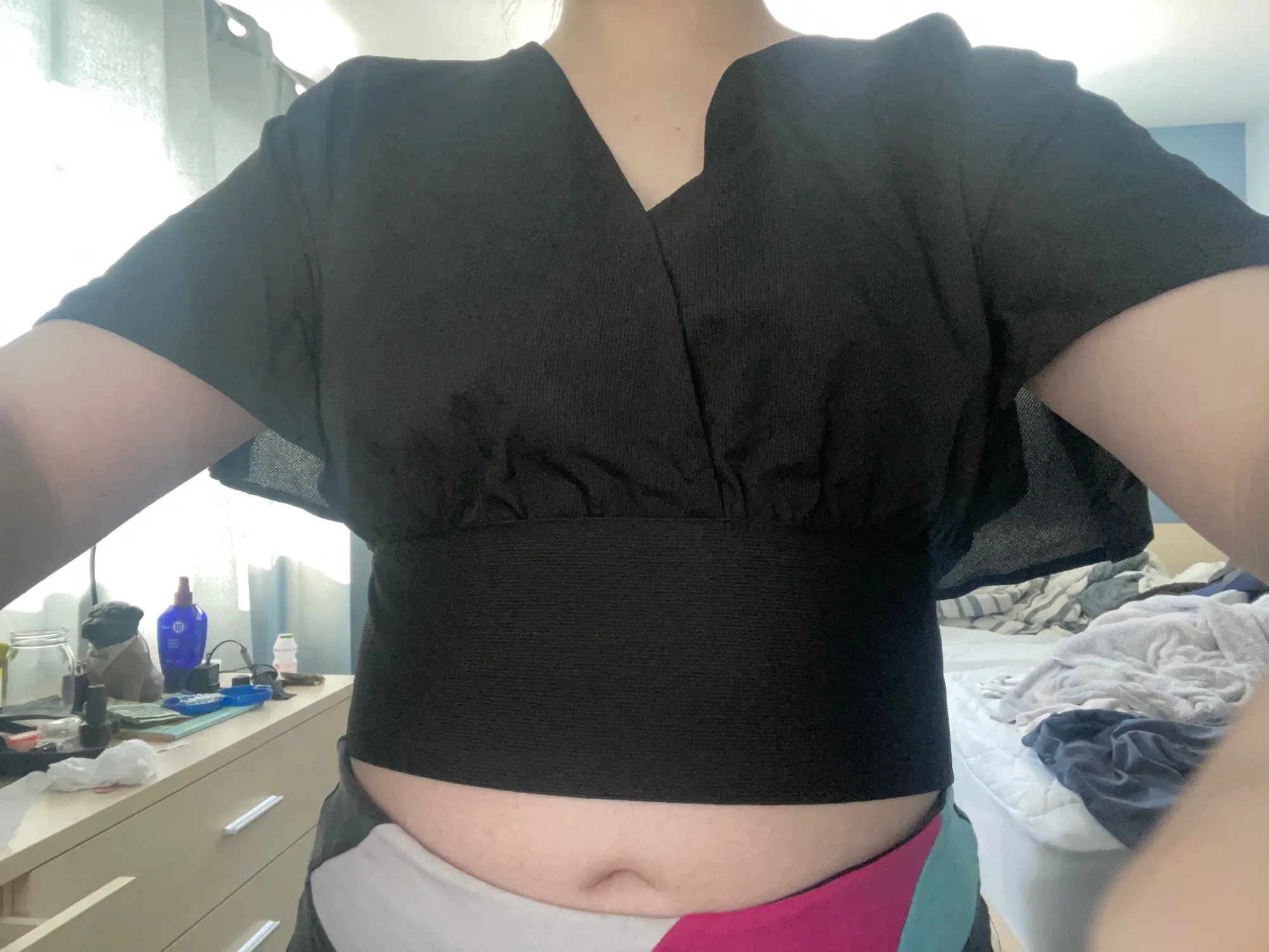 Мне нужно отрегулировать заднюю часть кнопки и добавить эластичность и прикрепить ее к петле, чтобы блузка подходила облаку, иначе она будет тугой, другие разумные, подходят для хорошего материала, также очень хорошие