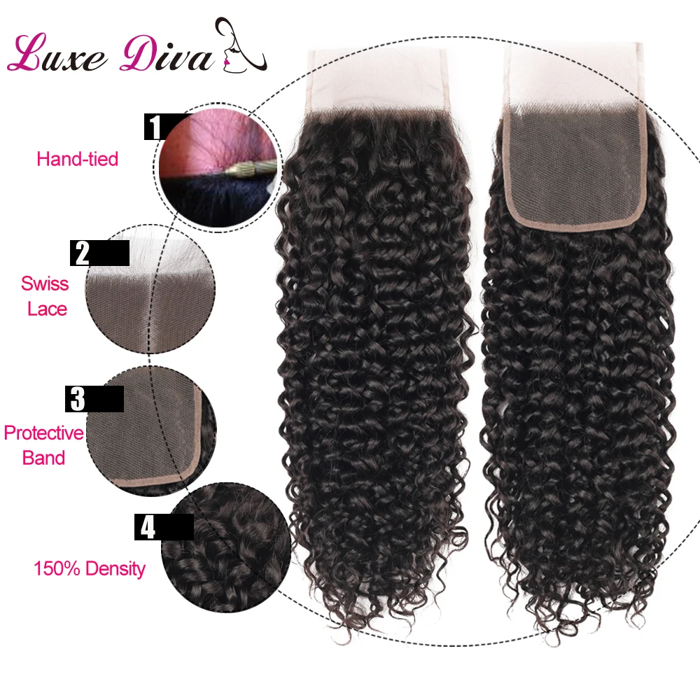 Luxediva, бразильские искусственные волосы с застежкой, кудрявые пряди волос с кружевной застежкой, афро Реми, наращивание волос