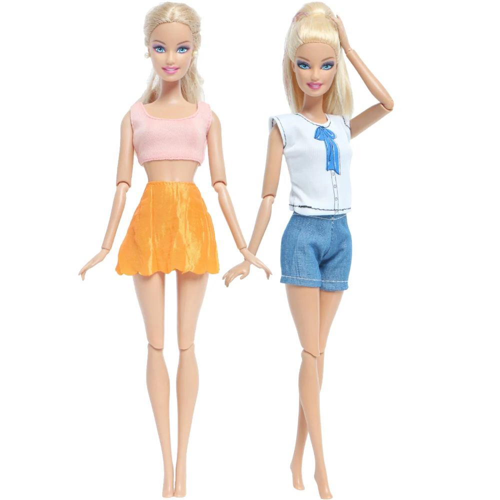 2 комплекта одежды BJDBUS, рубашка, юбка и джинсовое платье ручной работы, милые аксессуары, Одежда для кукол Барби, игрушки для девочек