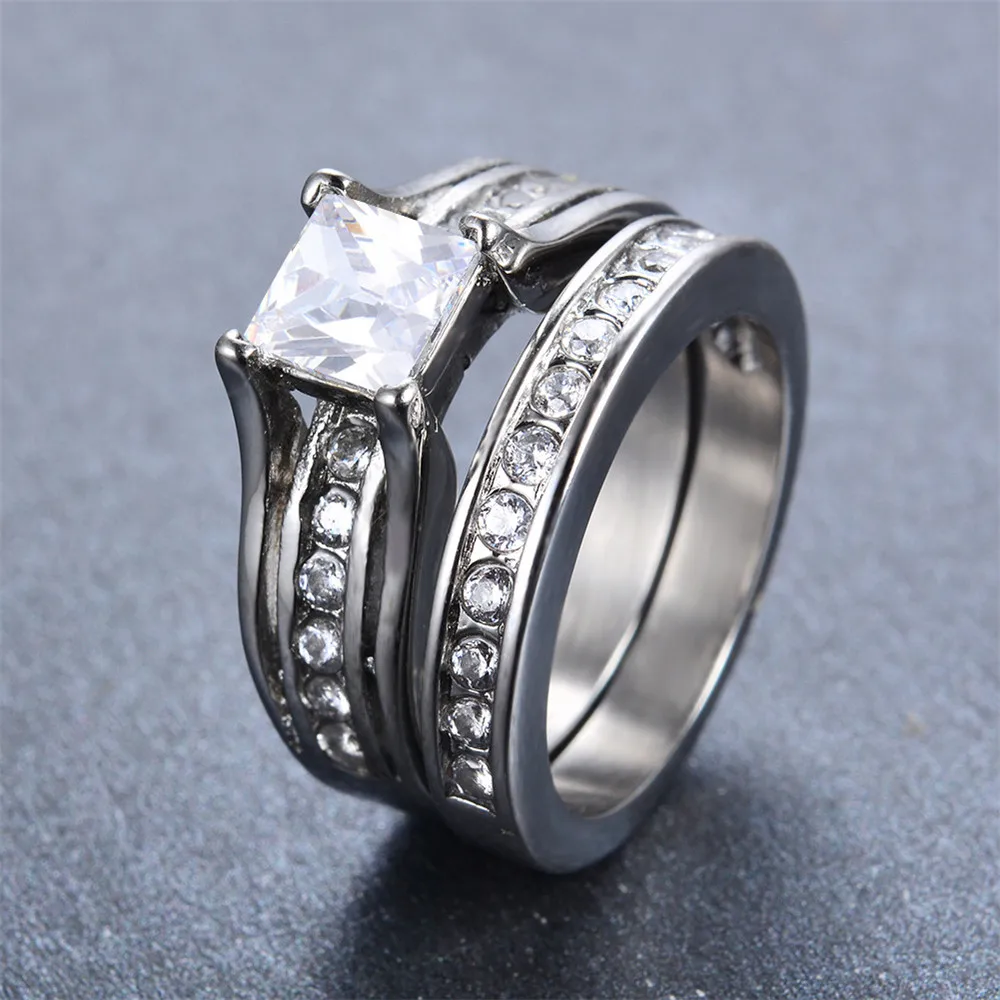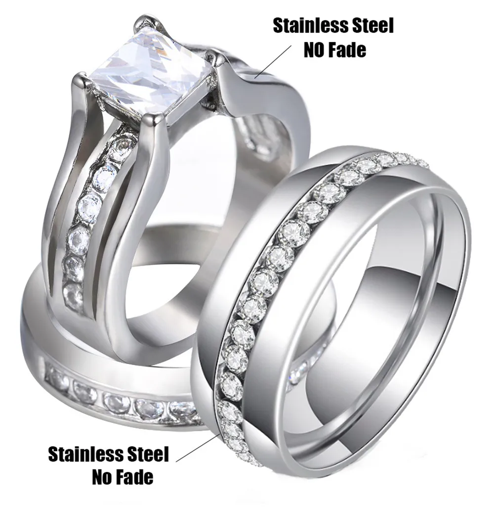 Его и ее набор свадебных колец из нержавеющей стали 316L, свадебные с кубическим цирконом, обручальные кольца для мужчин и женщин