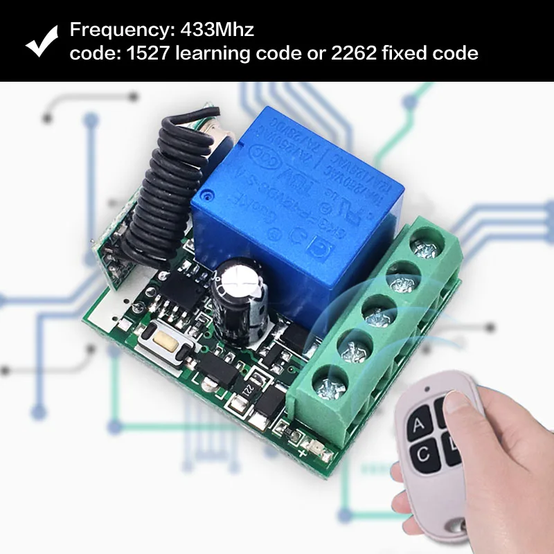 433 МГц беспроводной универсальный пульт дистанционного управления 12 В постоянного тока 1CH rf релейный приемник и передатчик для дистанционного переключателя двери/гаража/двигателя.