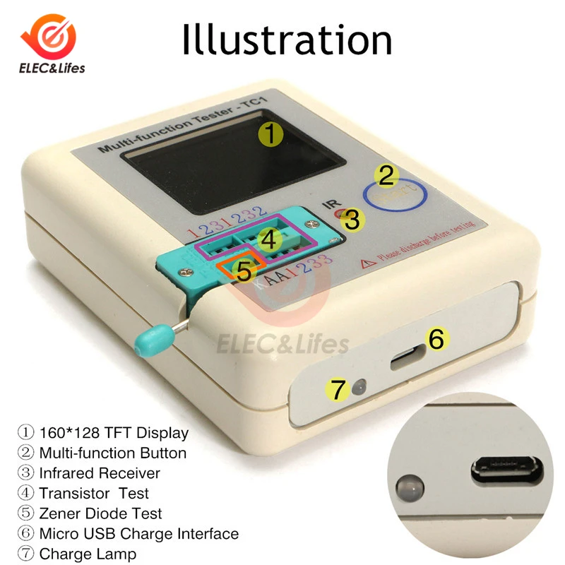 LCR-TC1 3,5 ''160*128 TFT цветной дисплей Графический Многофункциональный тестер транзисторов с подсветкой для диодного триодного конденсатора детектор резисторов