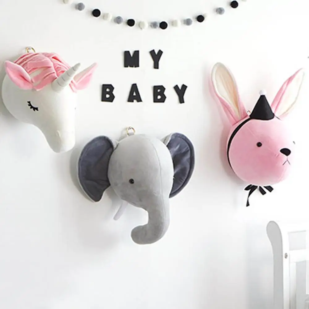 Настенное украшение в виде головы животного для детской комнаты, 3D Плюшевые игрушки, единорог, слон, кролик, лебедь, голова, настенное крепление для детской комнаты, подвесная Подарочная игрушка