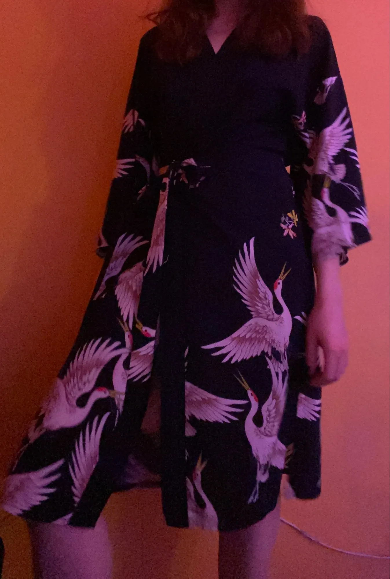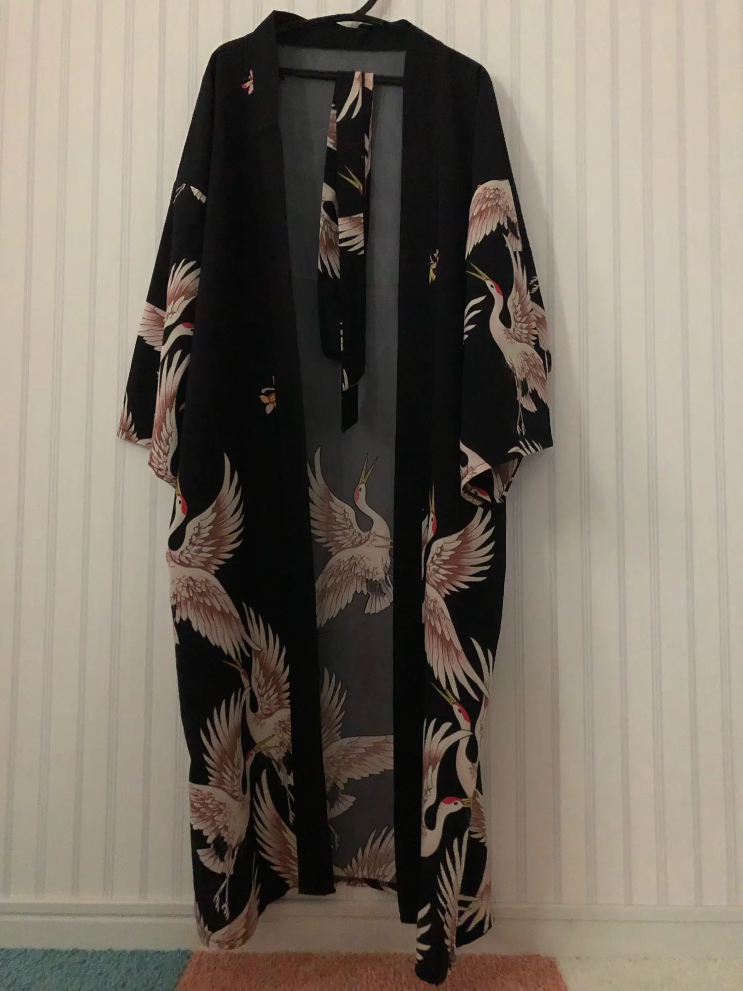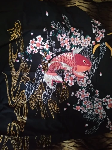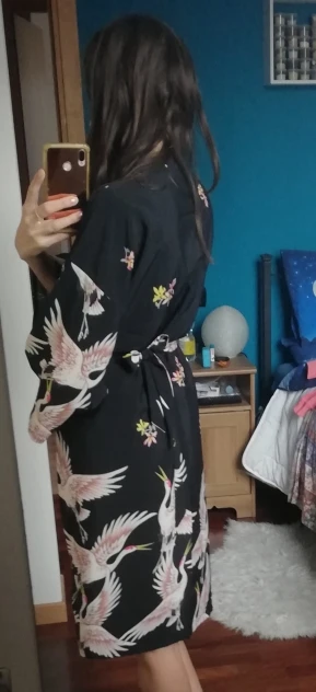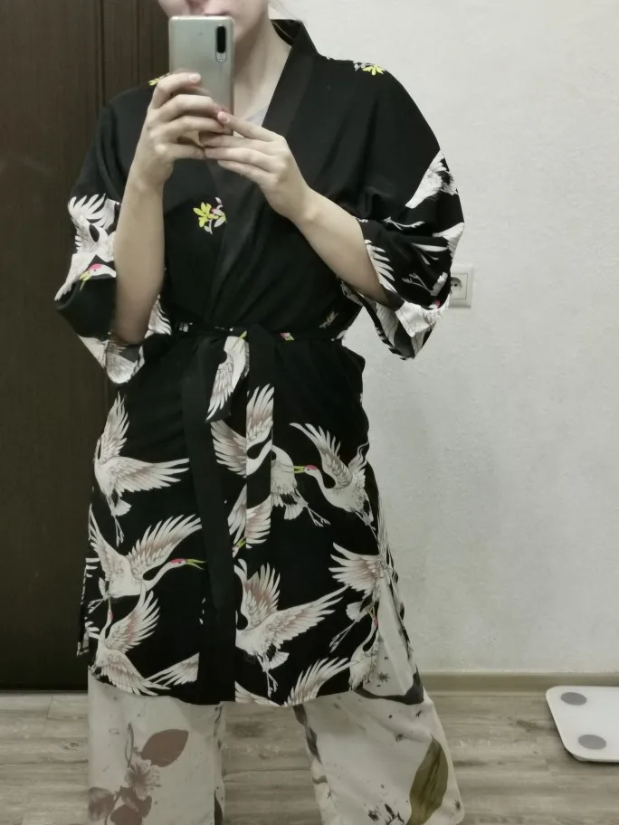 Прекрасное кимоно, ткань атластная, приятно сидит на теле, в жизни выглядит очень красиво, на рост 170 село великолепно, оверсайз, подойдёт и для более полных дам, рисунок яркий как на фото, в РФ доставлялось 2 недели. Thanks!.