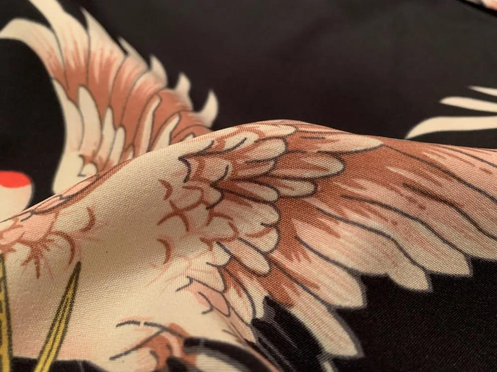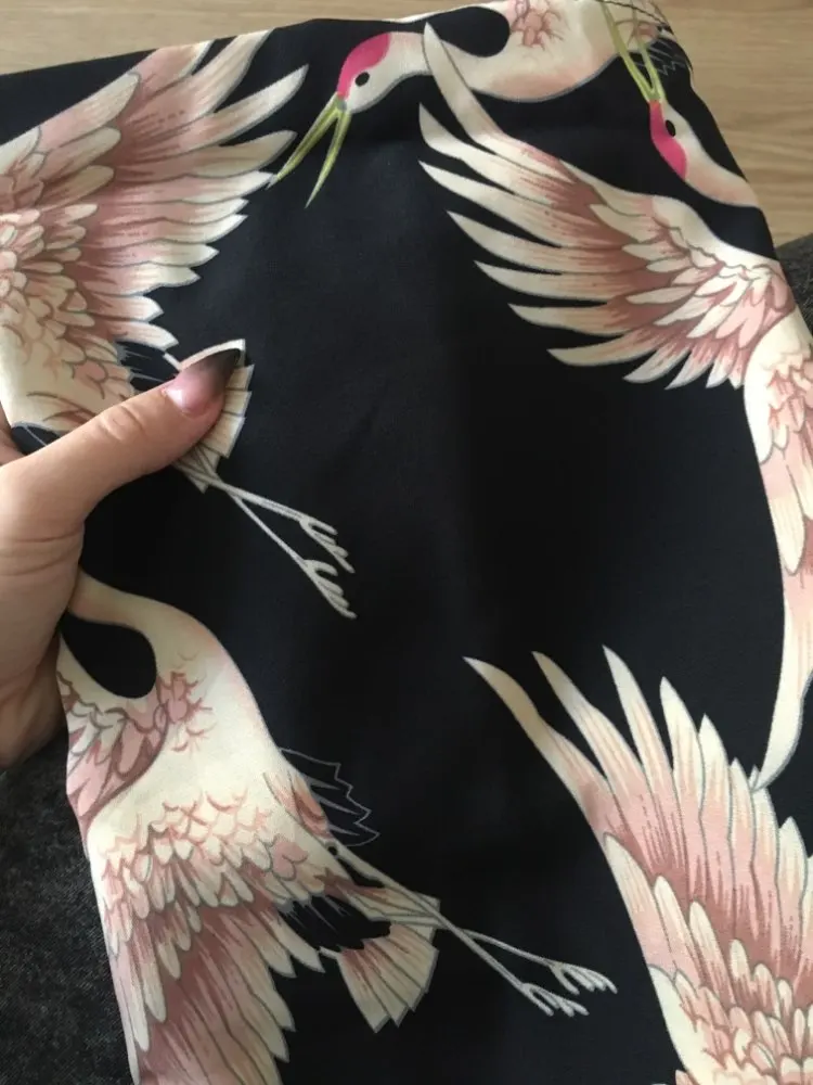 очень приятное на ощупь. пошито качественно. размер идеально мне подошёл доставка около месяца. продавец положил в удобный пакет с застёжкой, внутри обычной упаковки. брала с черное с журавлями
