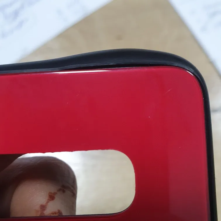 очень красивый чехол, гладкий как стекло, приятно держать в руках, через месяц пользования стал нравиться даже больше (колечко не идет в комплекте, прикреплял отдельно) есть небольшие косяки по внешней кромке окантовки, но их не заметишь, пока не проведешь пальцем