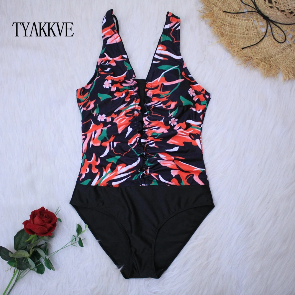 Женский сплошной купальник с рюшами, XXL
