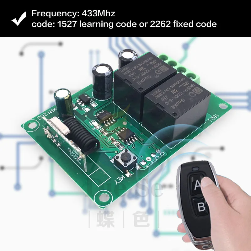 Пульт дистанционного управления 433Mhz DC 12V 2CH rf релейный приемник и передатчик для гаражного дистанционного управления и изменения двигателя положительный отрицательный