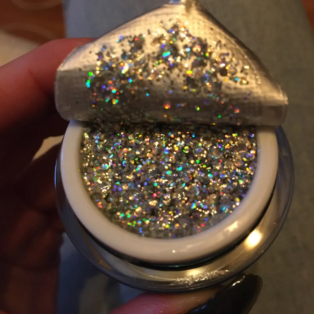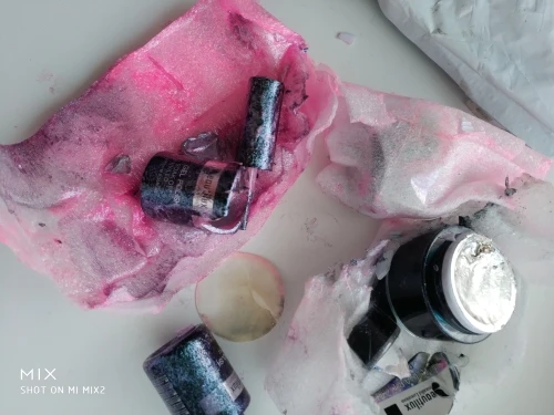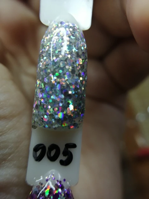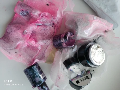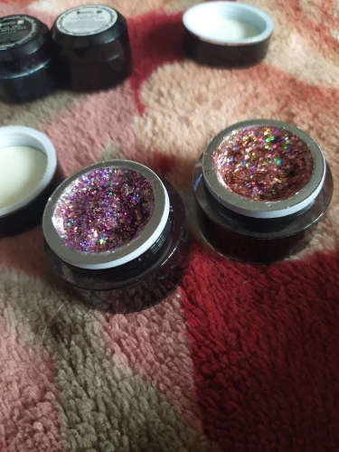 Я рада что пришли блестки, но на мой взгляд продавцу надо упаковывать их гораздо лучше, т.к. 5 баночек были сильно поцарапаны, а одна вообще с треснувшей крышкой. Хорошо, что содержимое баночки не вылилось. Продавец в подарок положил наклейки