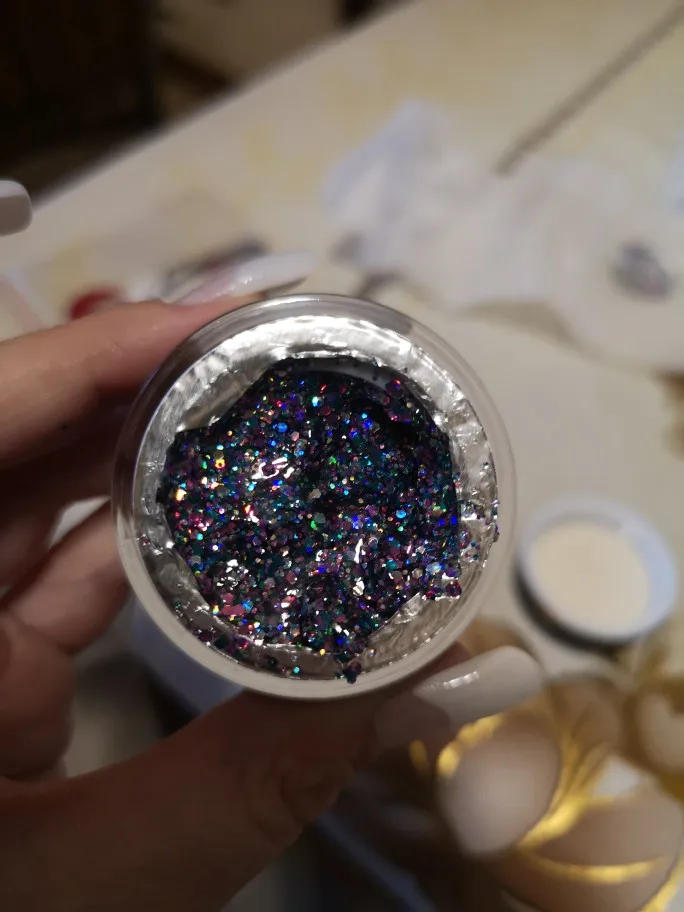 Гель очень красивый, блёстки горят как огонь, пришёл очень быстро.