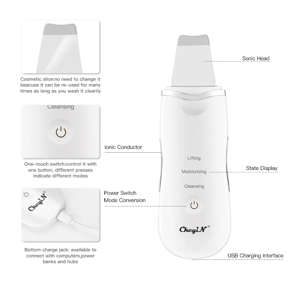 Ультразвуковой нано-ионный скрабер CkeyIN для очистки кожи лица, подтяжки, пилинга, глубокой очистки, красоты