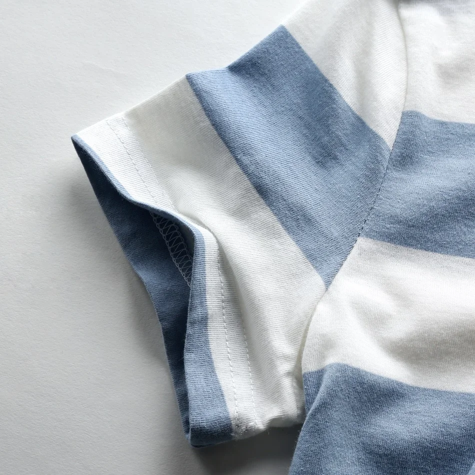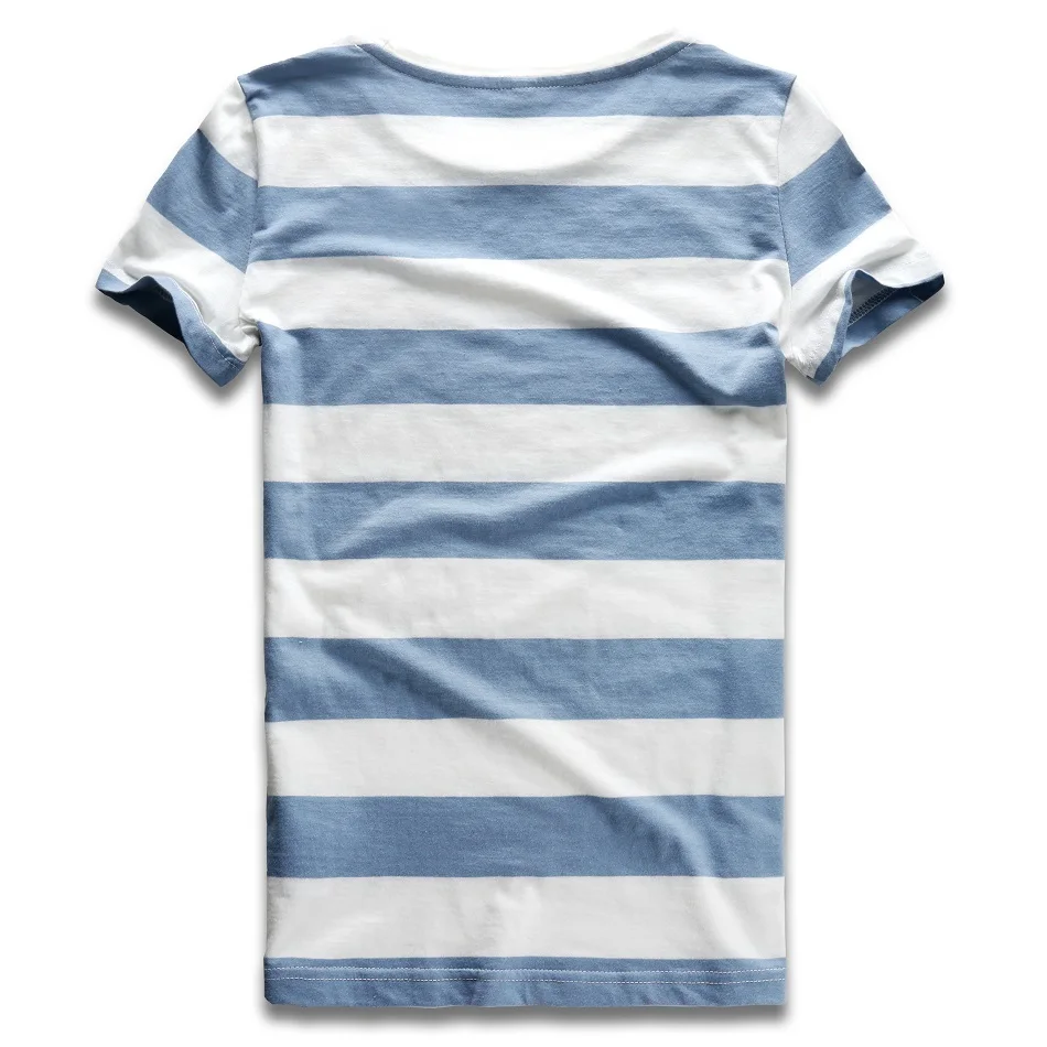 Женская футболка в бело-синюю полоску, яркий топ с круглым вырезом, футболка в полоску, топ, короткий рукав; Моряк