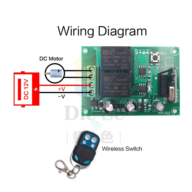 Беспроводной релейный модуль приемника постоянного тока, 12 В, 10 А, 2 канала, 433 МГц