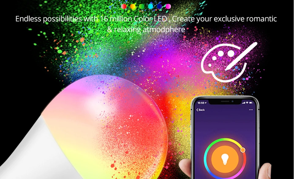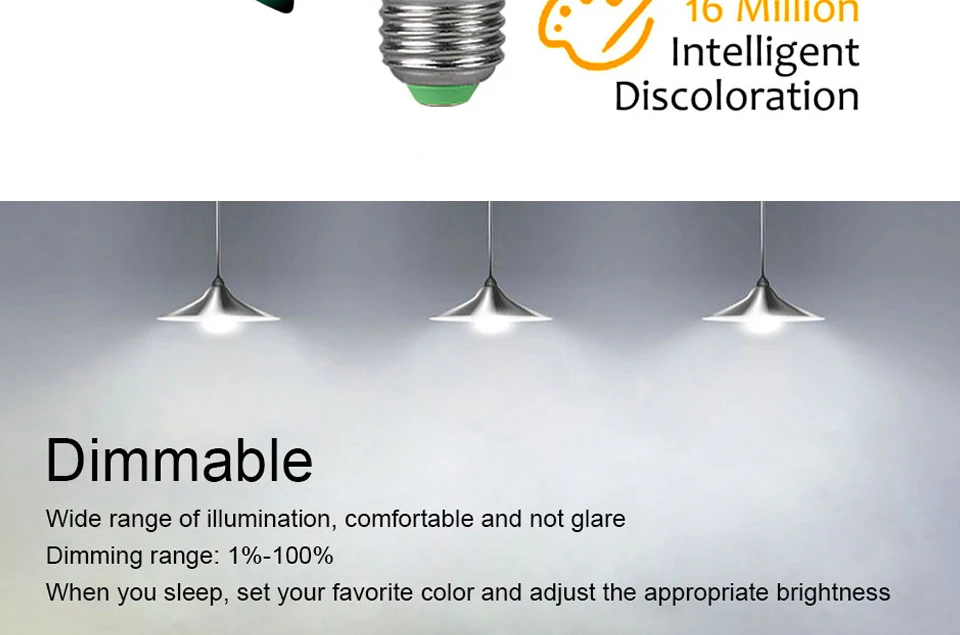 Особенности:(WiFi лампочка)Голосовое управление: умная лампа без концентратора, совместимого с Amazon Alexa и Google Home Assistant, Управляйте лампочкой Wi-Fi через ваш голос, концентратор не требуется.Дистанционное управление из любого места: с помощью бесплатного приложения на вашем смартфоне или планшете вы можете включить/выключить смарт-лампочки с поддержкой Alexa, где бы вы ни были дома или вдали.Мультиколор и функция графика: создайте свои любимые световые эффекты с 16 миллионов цветов и яркость каждого цвета затемнения. Вы также можете настроить расписание для включения/выключения в соответствии с заданным временем.Широкое применение: вы можете установить различные режимы освещения в приложении для различных случаев, включая кухню, гостиную, спальню. Wifi Светодиодная умная лампочка также может использоваться для настольной лампы, кафе, бара, вечеринки и т. д.Характеристики:(WiFi лампочка)Название продукта: RGBW WiFi умная лампаФорма: круглаяПотребляемая мощность: 15 ВтСветовой поток: 1800LMНапряжение: 85-265 В переменного токаТип лампы: LED SMD 2835Тип розетки: E27Цвет света: RGBW(RGB + белый) RGBWW(RGB + теплый белый)Особенности:(Bluetooth лампочка)Требуется устройство, совместимое с Bluetooth 4,0.Встроенная функция хранения сохраняет конечный цвет или программный режим.Работает с iOS 8,0 или выше и Android 4,3 или выше.16 миллионов регулировок цвета, 30 встроенных динамических режимовВыбор цвета «сделай сам», Функция синхронизации, Функция микрофона, функция музыкального режимаФункция выбора цвета сцены, функция регулировки скорости и яркости360 градусов, не нужно смотреть на лампочку при дистанционном управлении.Групповой контроль.Характеристики:(Bluetooth лампочка)* Входное напряжение: 85-265 В переменного тока 50-60 Гц* Входной ток: 0.14A Макс. Переменного тока* Мощность: 15 Вт* Поддержка Bluetooth 4,0* Радиус действия беспроводного приемника: 5-10 м* Цвет света: белый + RGB/теплый белый + RGB* Материал: пластик