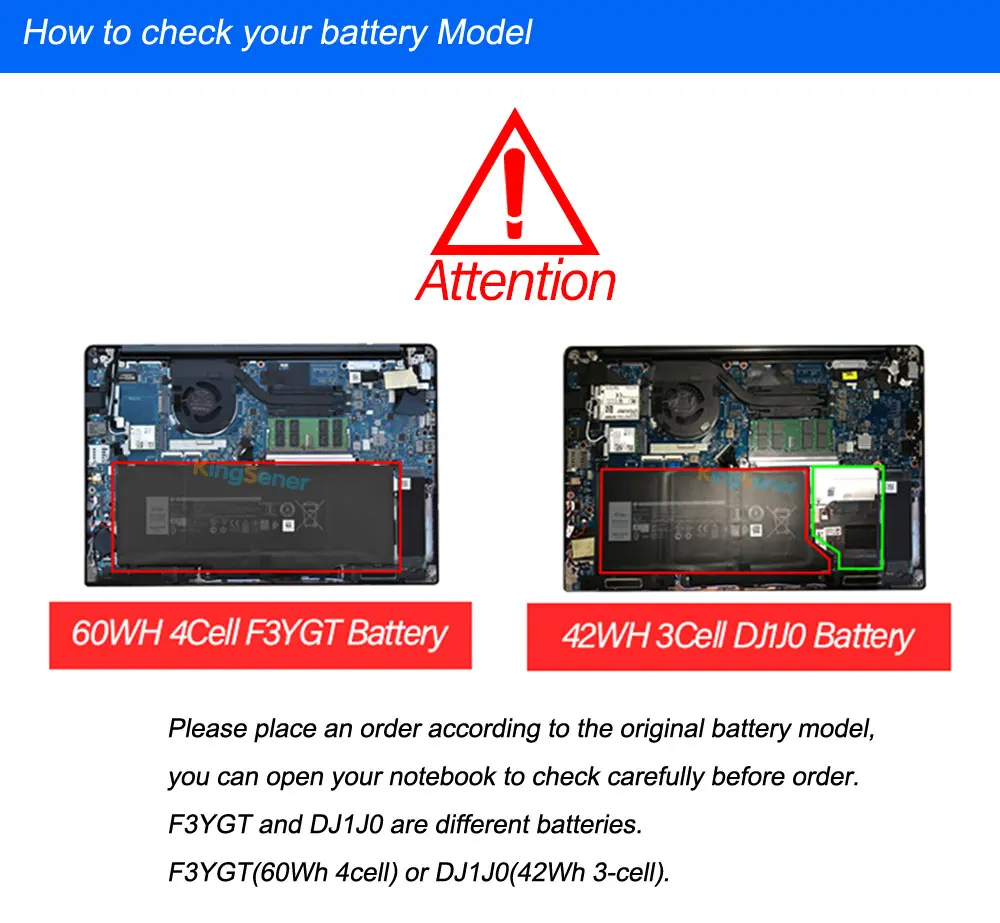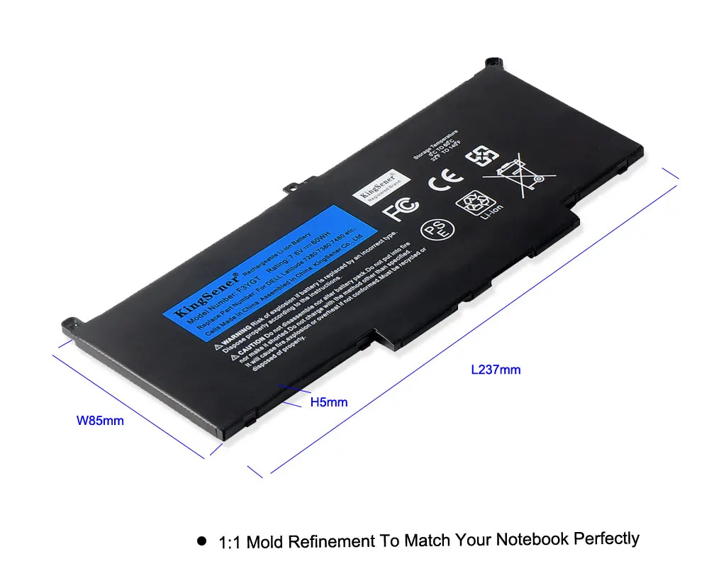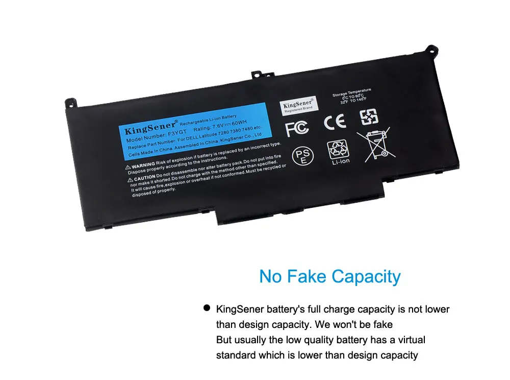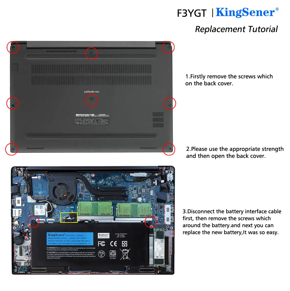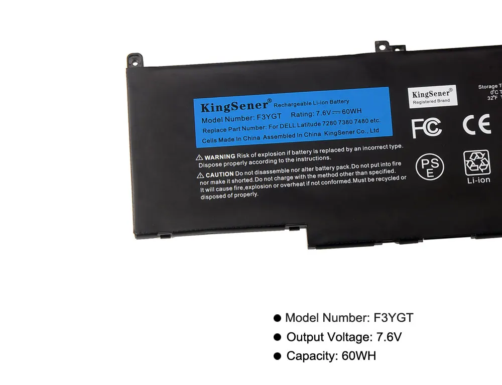 Аккумулятор Kingsener F3YGT для ноутбука Dell Latitude 12 7000, E7280, E7290, E7380, E7390, E7480, E7490, F3YGT, 2X39G, 7,6 В, 60 Втч