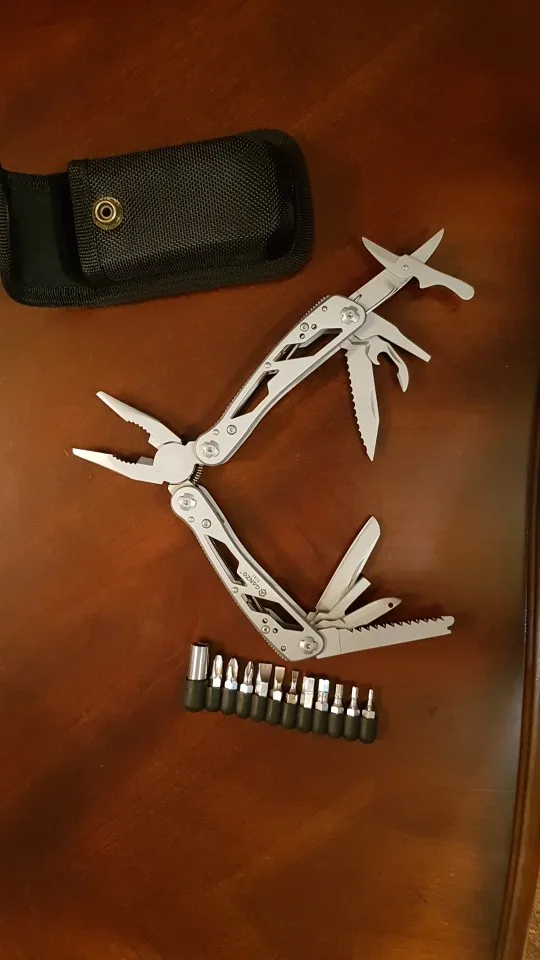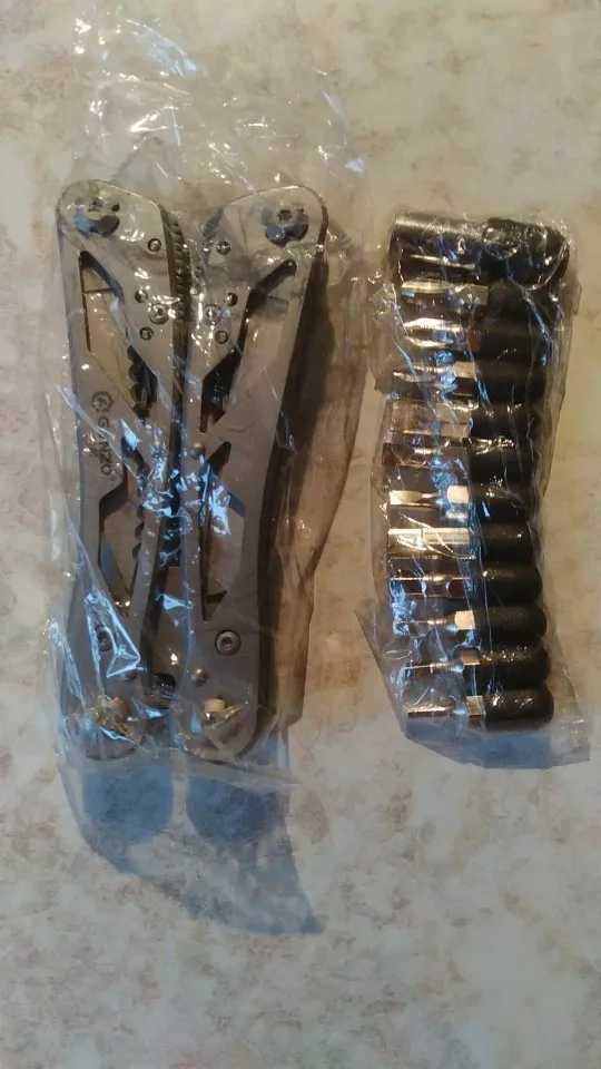 Тул шел в Москву месяц, трек отслеживался всю дорогу. Качественный, тем более за эти деньги. Биты перекроют основные потребности простого пользователя. Нож острый, плоскогубцы подпружинены, но пружина немного скрипит. Капнул оружейного масла - скрип пропал. резюме: отличный мультитул за эти деньги.