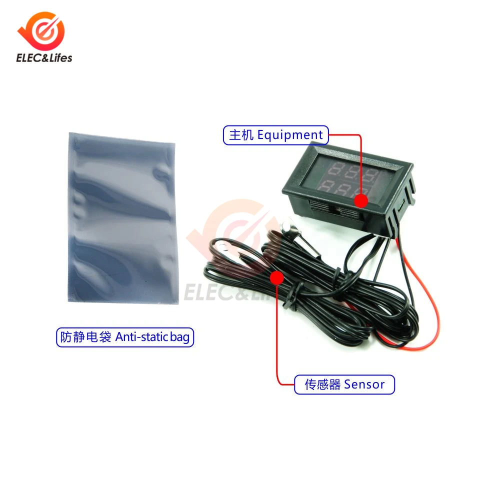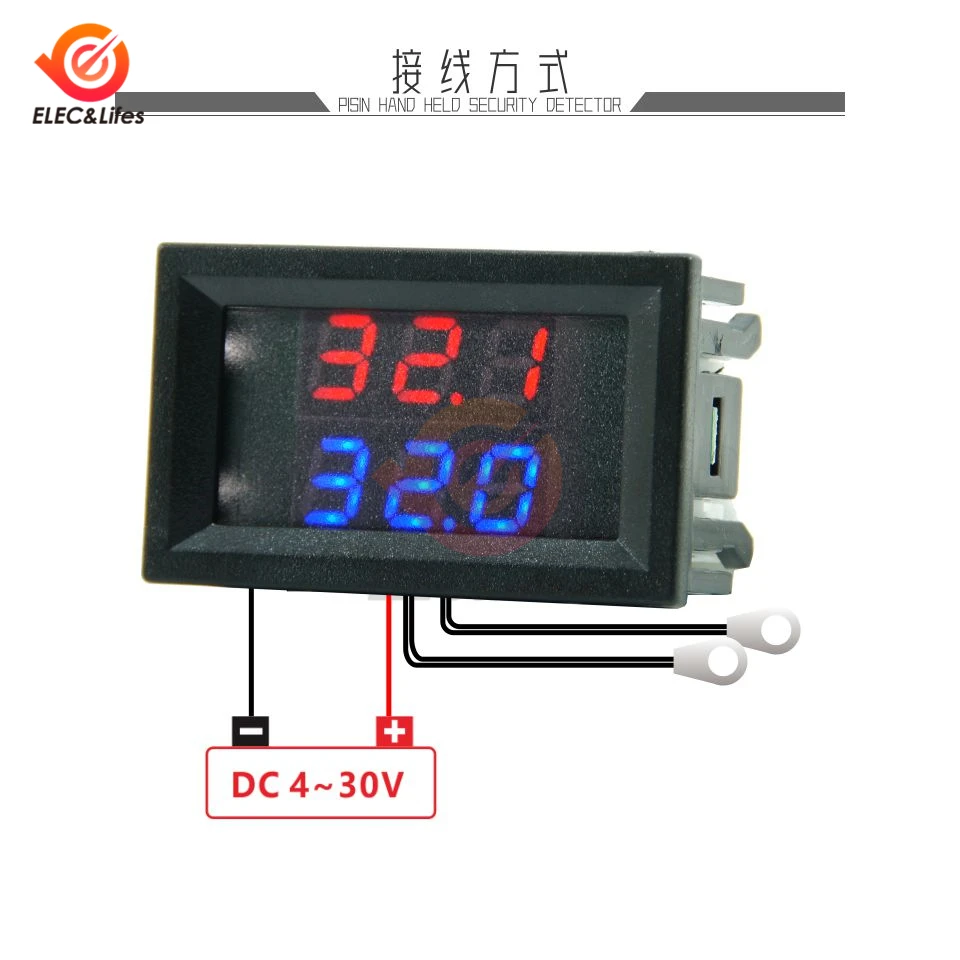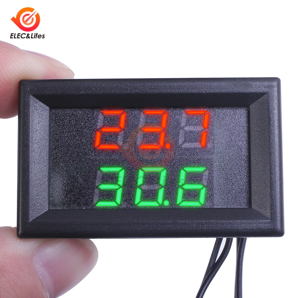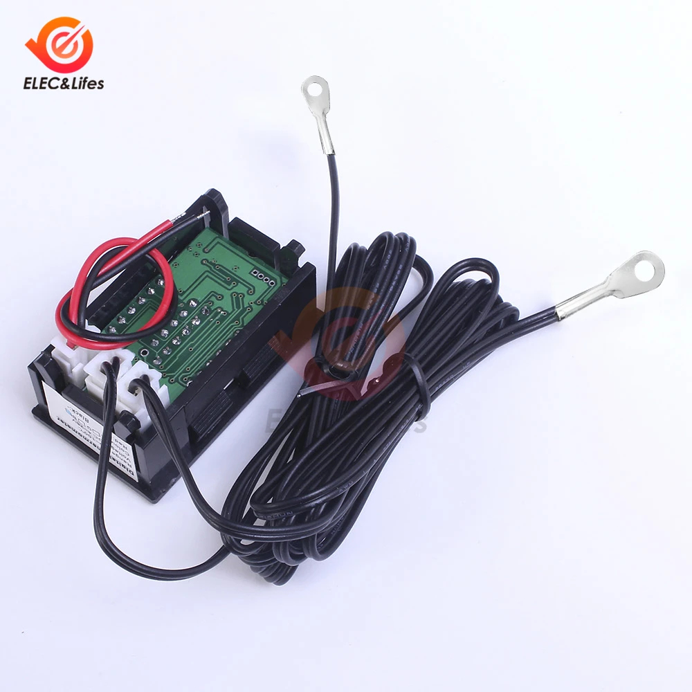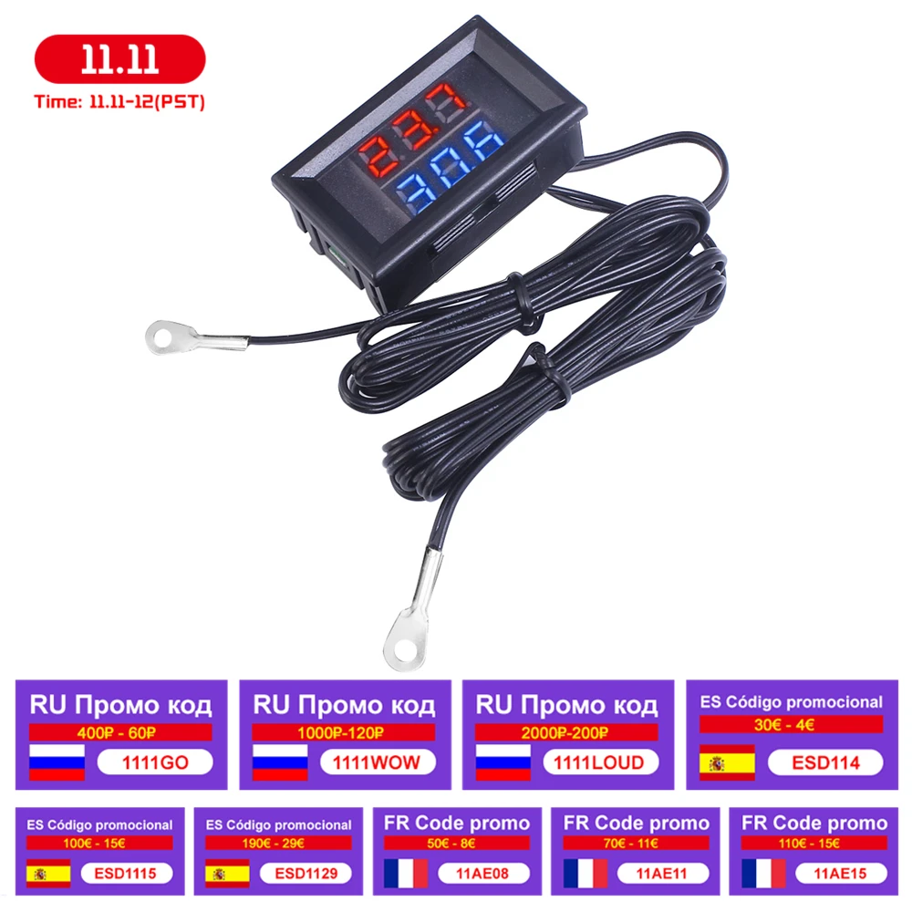 Цифровой термометр, 12 В, 24 В, с двойным металлическим водонепроницаемым зондом