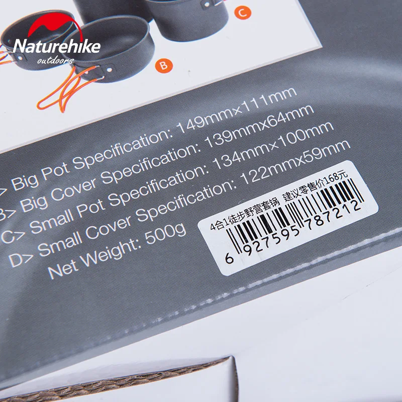 Naturehike походная посуда 4 в 1 набор кастрюль портативная Сверхле...