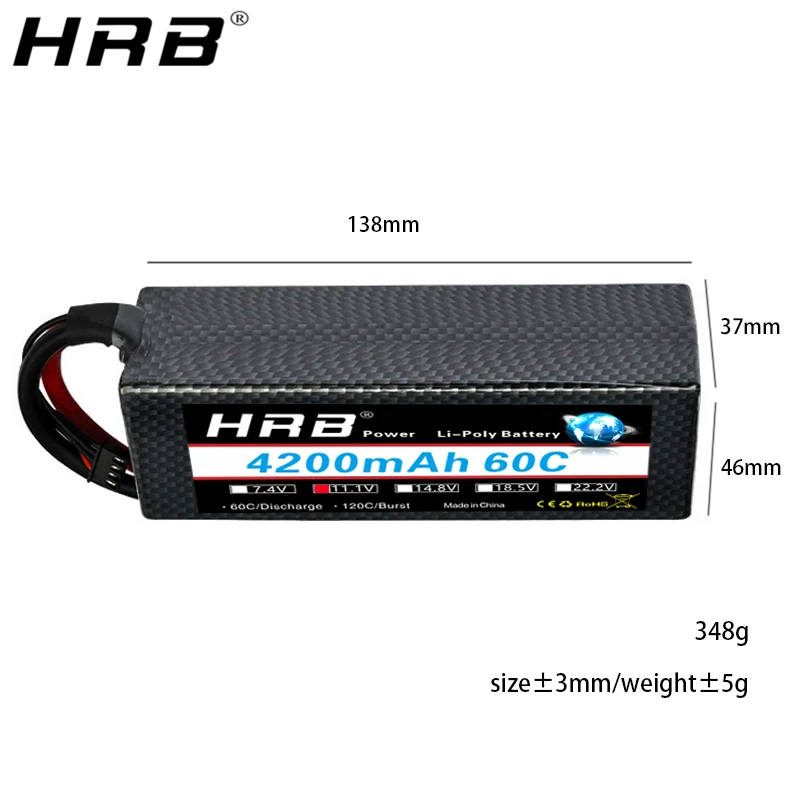 Аккумулятор HRB Lipo 4200 в, 14,8 в, T Deans 7,4 В 11,1 В 2S 3S 18,...
