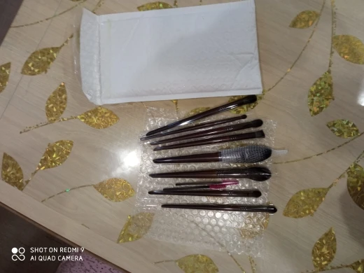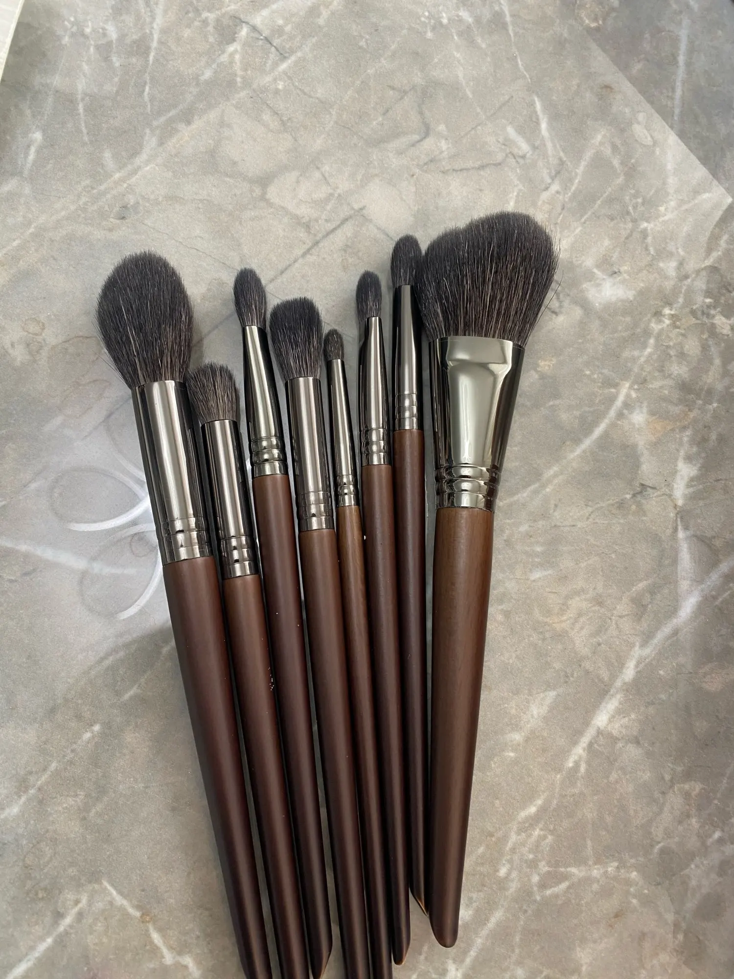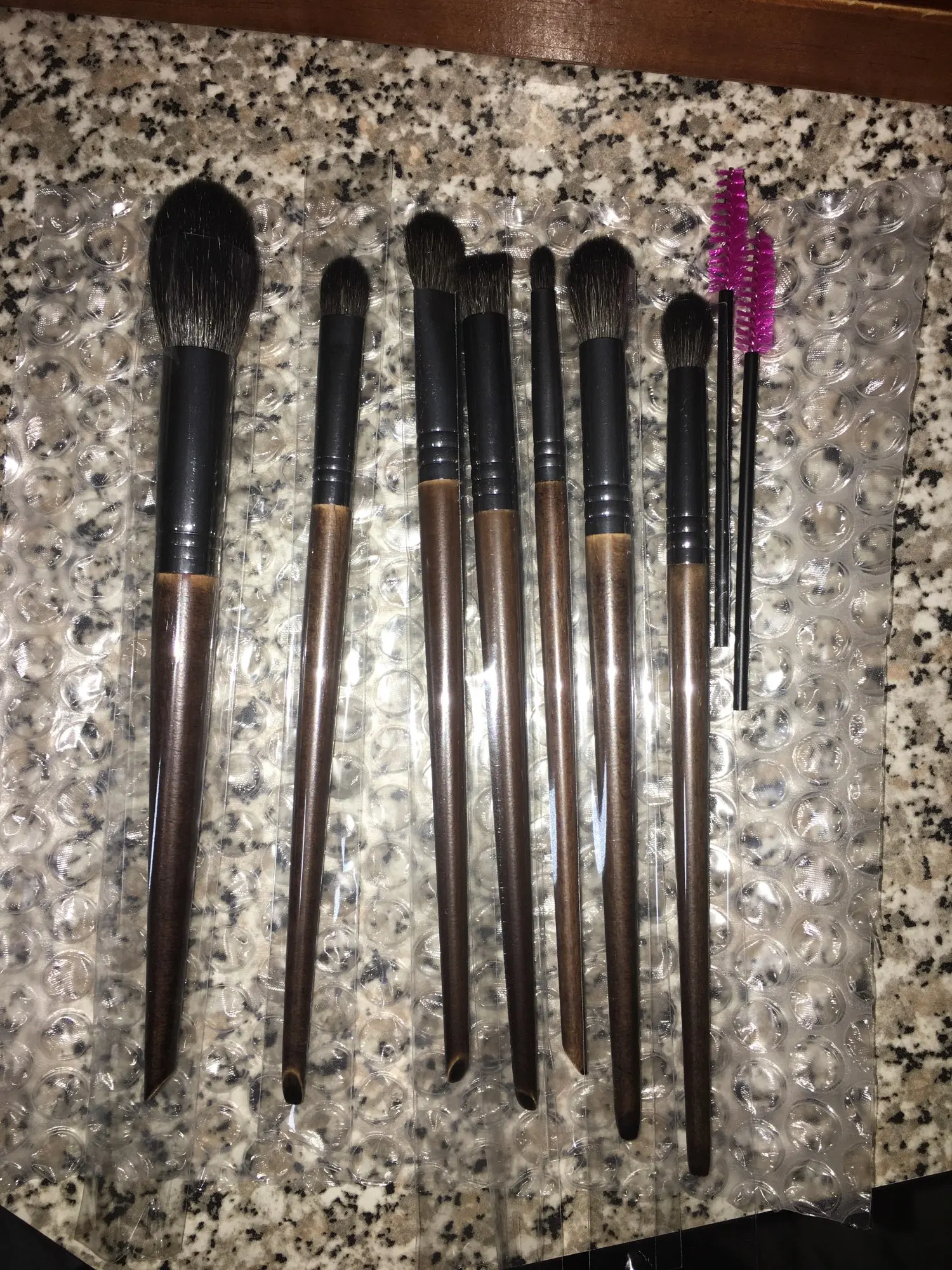 ИЗУМИТЕЛЬНОЕ КАЧЕСТВО чаши, очень мягкие и деревянные противоскользящие ручки. Идеально подходит для любого макияжа, включает в себя кисти для глаз и лица плюс две кисти для бровей или ресниц. Доставка была очень быстрой и общались с отличным продавцом. 10/10. Они идеальны.