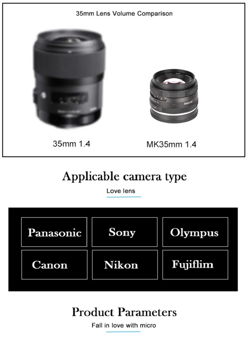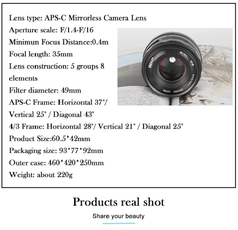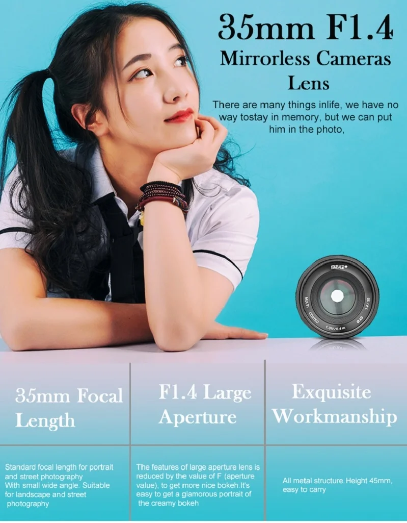 Объектив Meike 35 мм f1.4 (не: в комплект не входит камера)-1 шт.