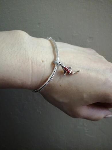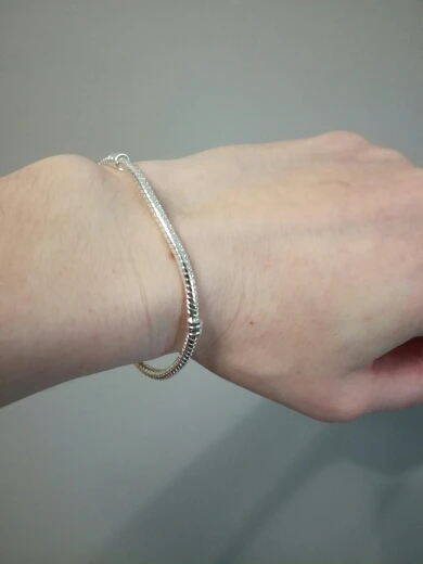 очень блестящий браслет, но мне нравится, да и по размеру идеально как я хотела, моя рука 16см, браслет заказала 17см, много шармов надевать не планирую. доставка удивила, как для укрпочты очень быстро, недели 1.5 - 2